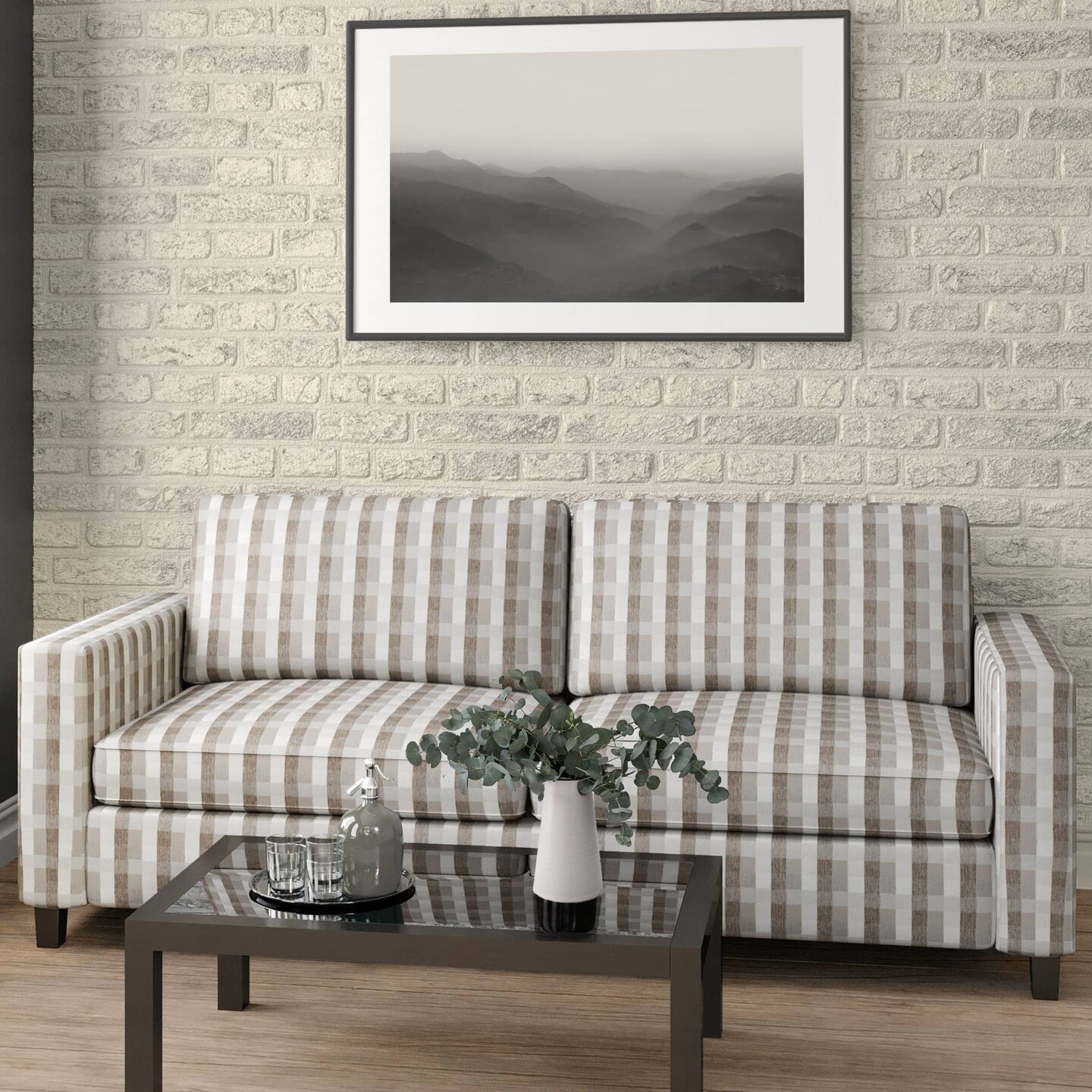 Dove - Beige & Taupe Check & Houndstooth,Plaid Upholstery Fabric 54 Inches"