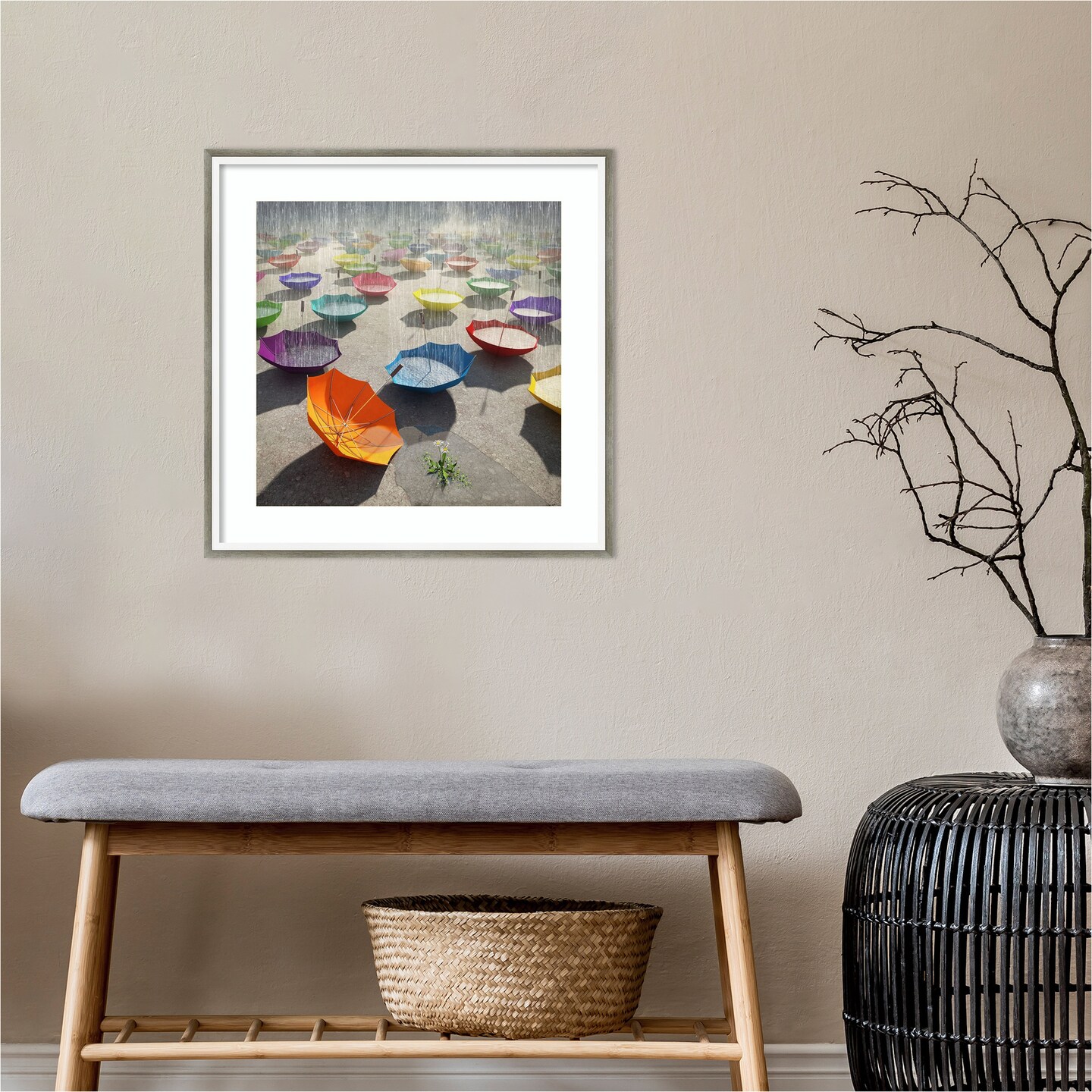 Downpour (Umbrella) by Cynthia Decker Wood Framed Wall Art Print 21 in. W x 21 in. H