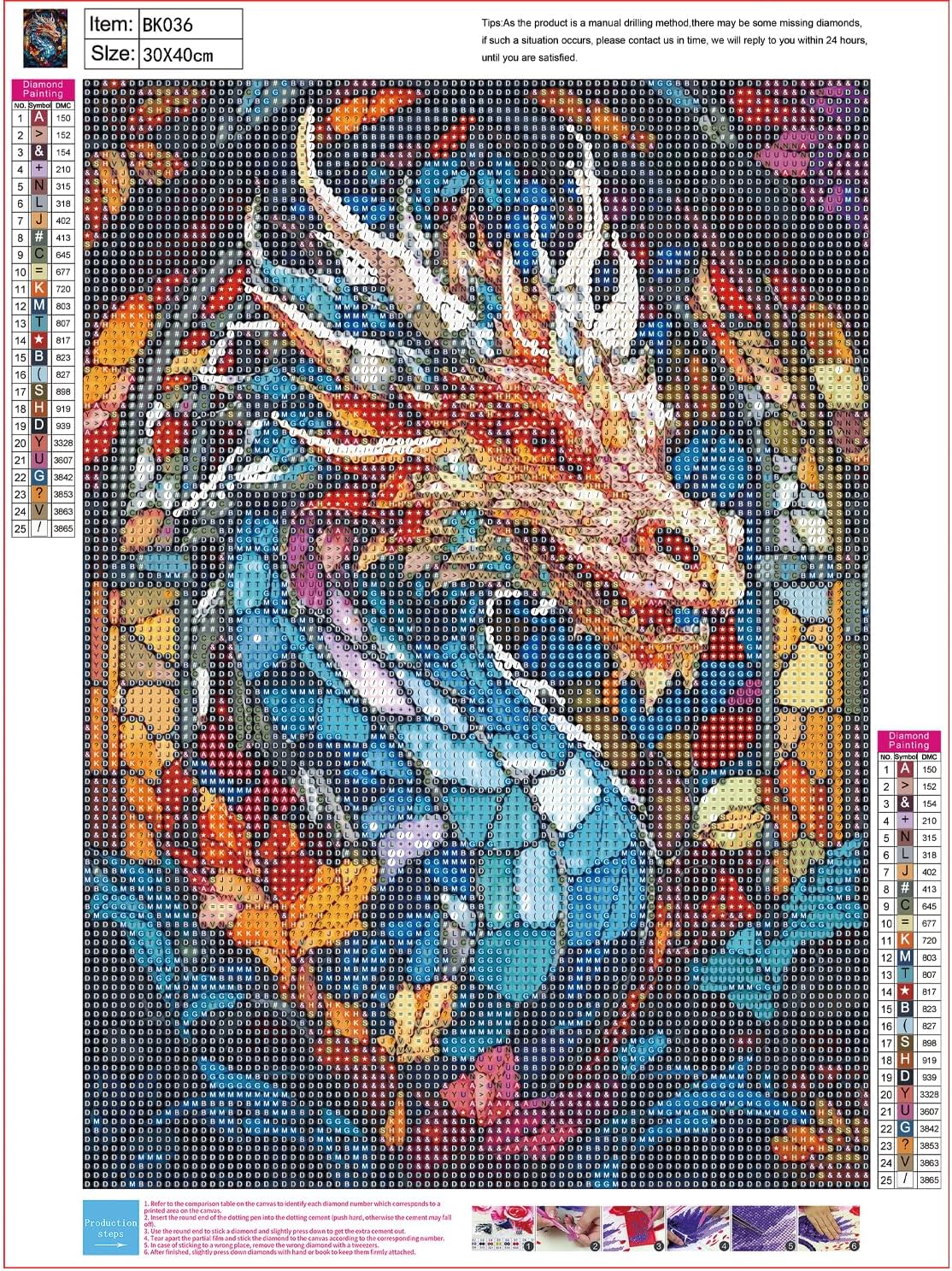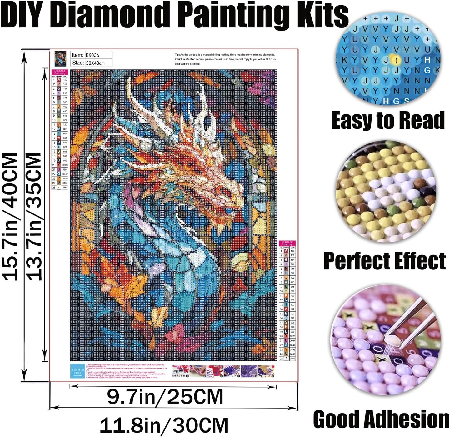 Dragon 5D Diamond Painting Kit for Adults – Full Drill Round Gems DIY Art, Beginner-Friendly, 12x16 Inch Wall Décor & Gift