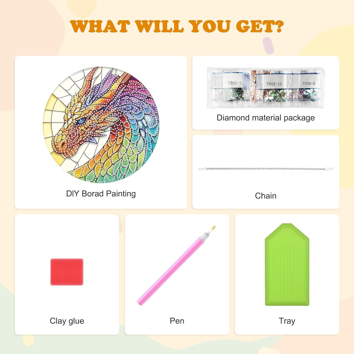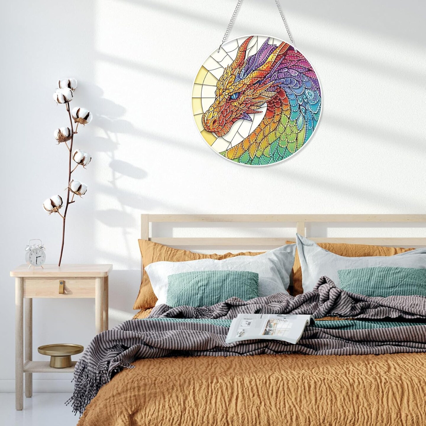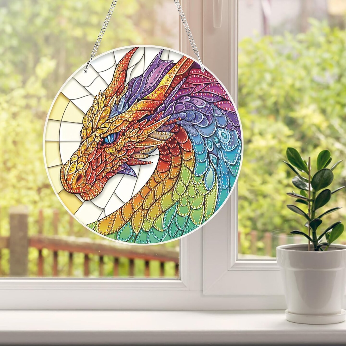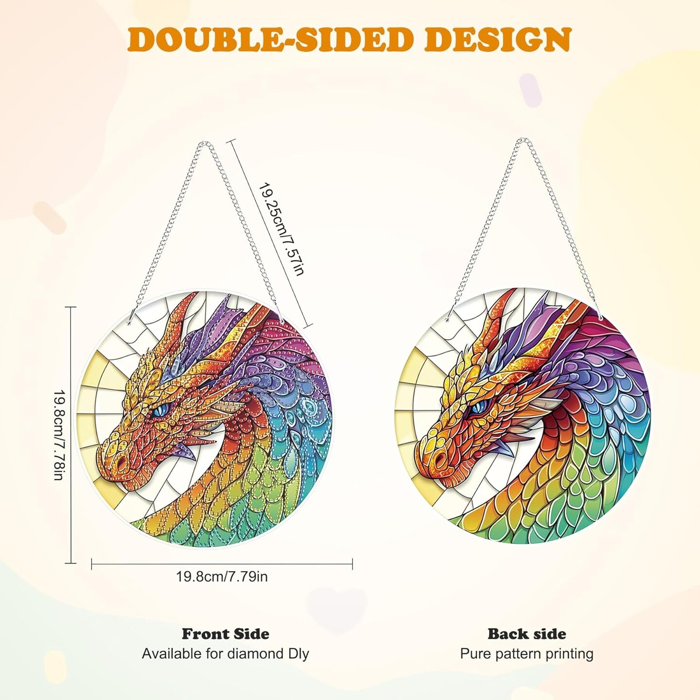 Dragon Hanging Diamond Art Kit for Adults – Stained Glass Crystal DIY Ornament, Double-Sided Gem Art, 8.3x8.3 Inch Wall & Window Decor