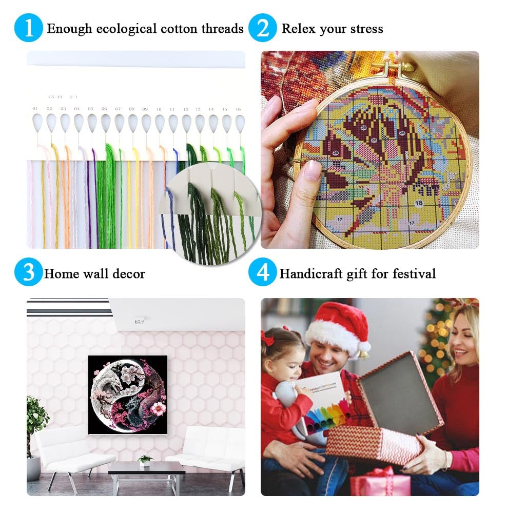 Dragon Stamped Cross Stitch Kits for Beginner, Needlepoint Counted Cross Stitch Kits for Adults, 11 CT Patterns Dimensions Counted Cross Stitch Kits Arts Craft Kits 14x14in (Without Frame)