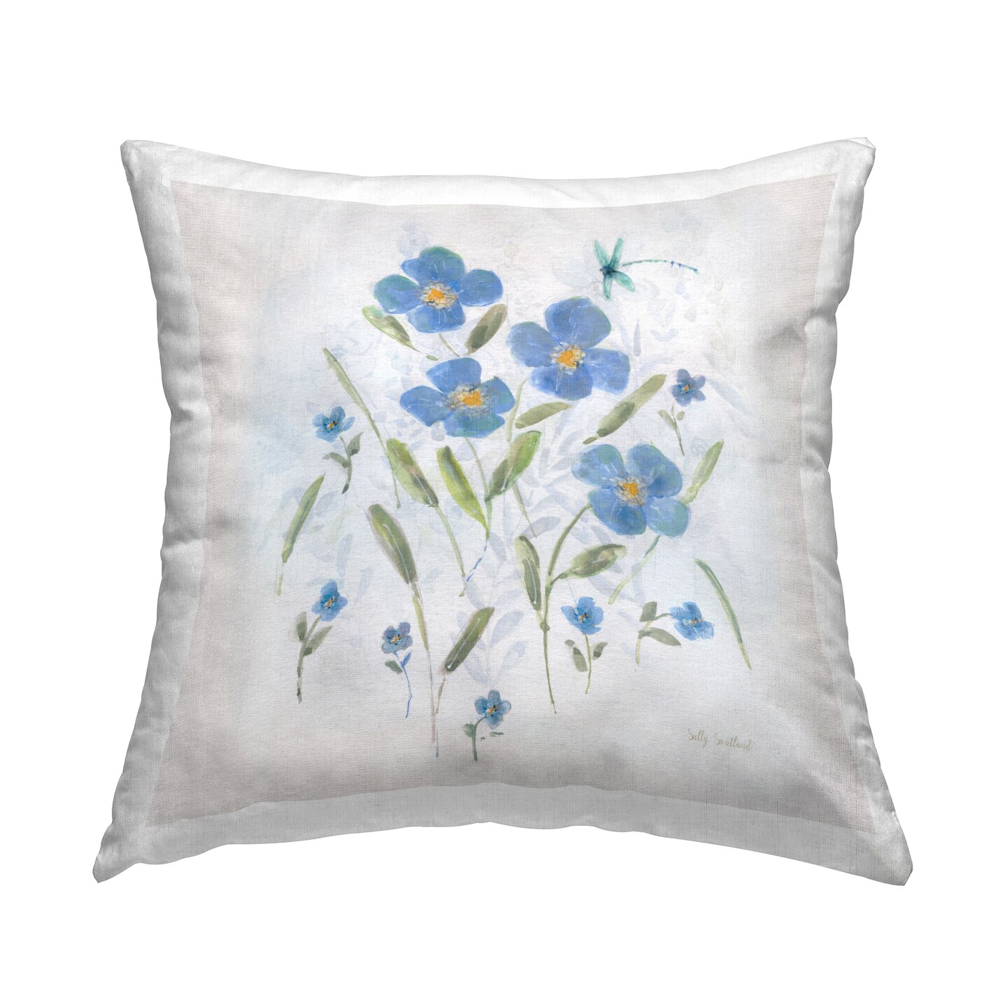 Dragonfly & Blue Florals Decorative Printed Throw Pillow Design by Sally Swatland, 18 x 7 x 18