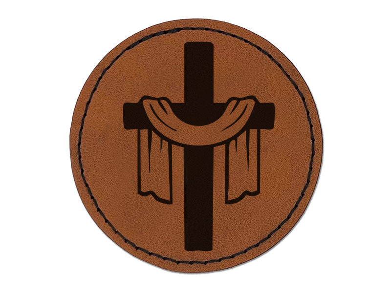 Draped Cross Easter Christianity Jesus Christ Round Iron-On Engraved Faux Leather Patch Applique - 2.5 Inch