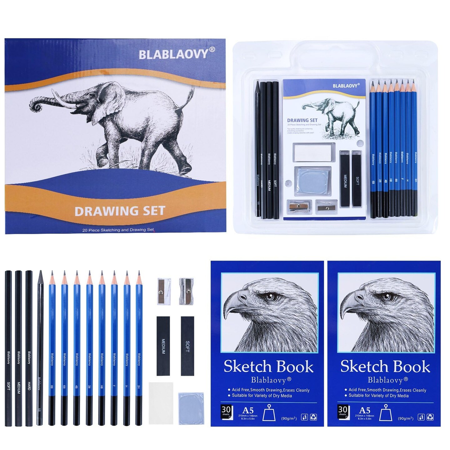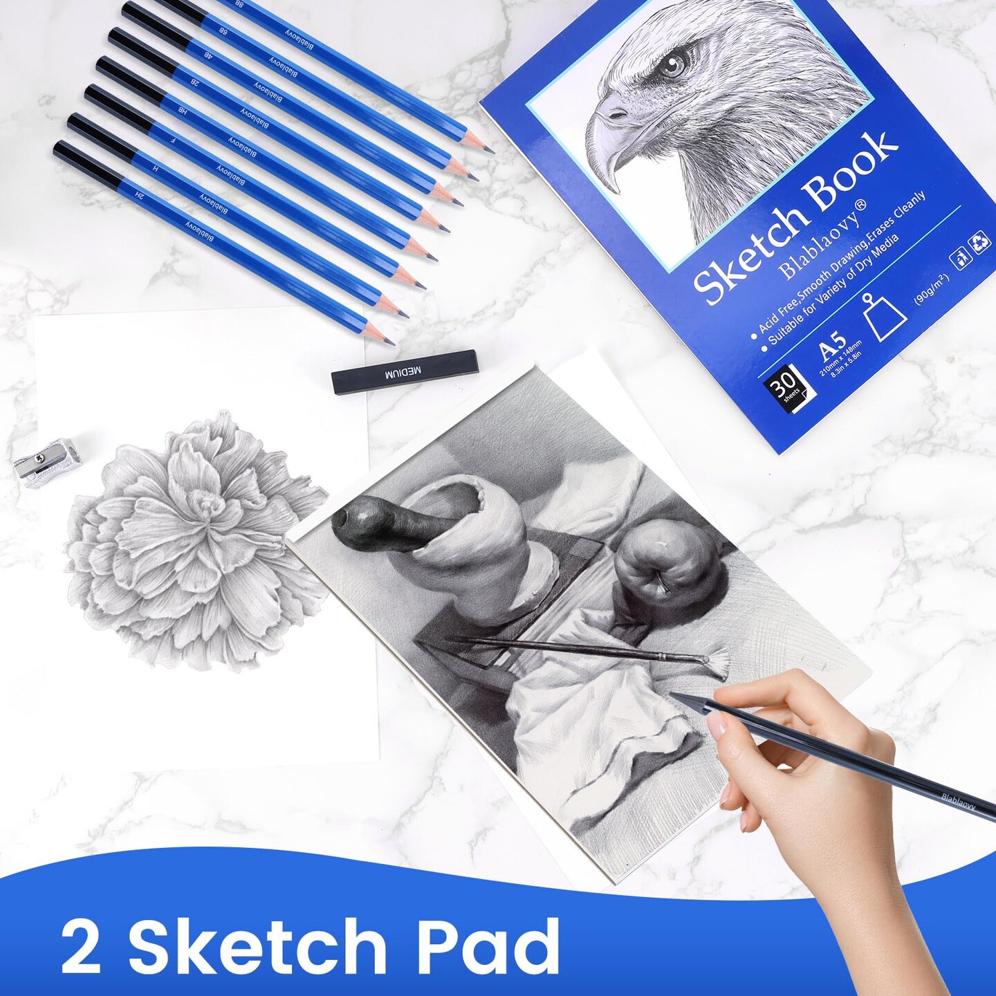 Drawing Kit with 2 Sketch Book, Sketching Pencils, Graphite Pencils, Charcoal Pencils, Art Kit for Artists Adults Teens Beginner Kid, Drawing Pencils for Sketching
