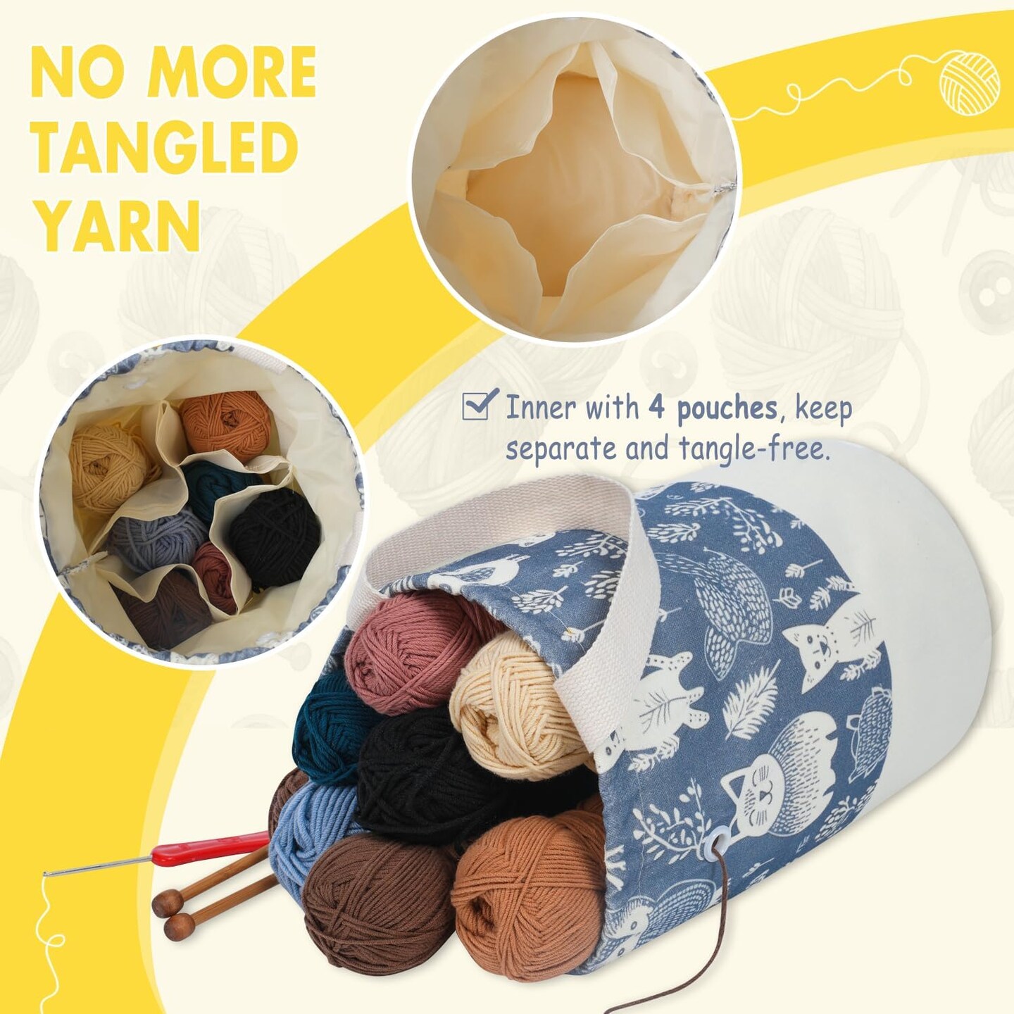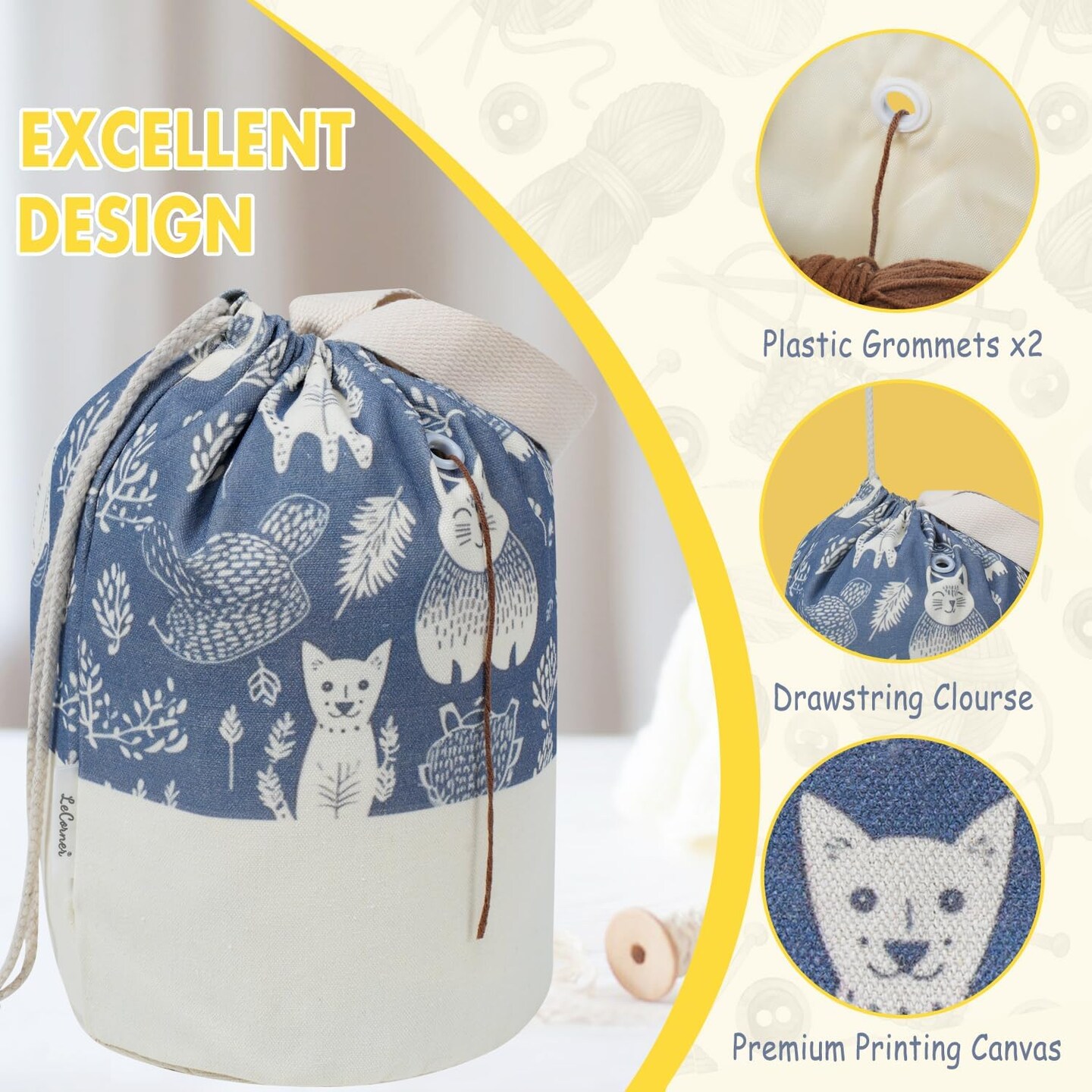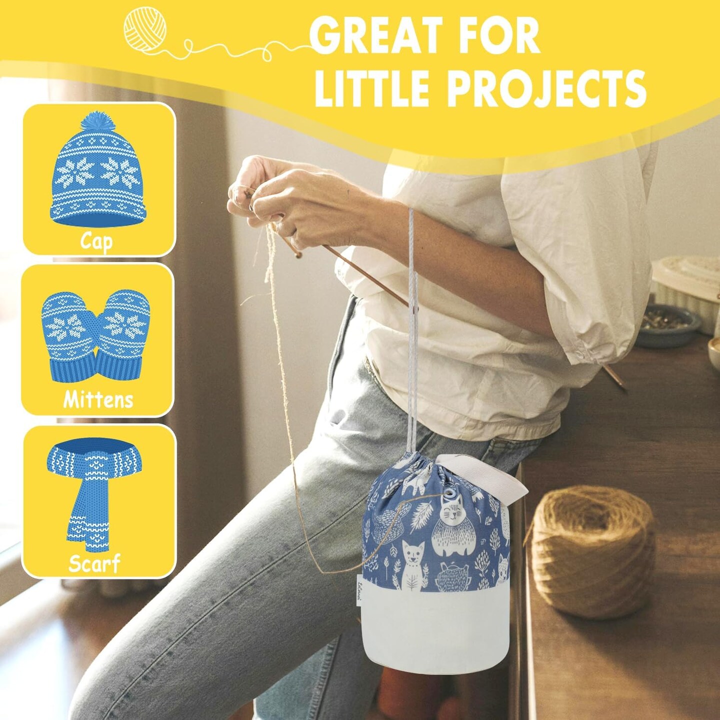 Drawstring Yarn Storage Knitting Bags(Navy Blue)