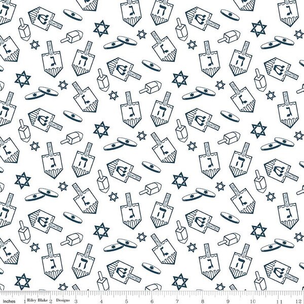Dreidel in Toss White (c16422-white) | 8 Nights, 8 Lights | Tara Reed | Riley Blake