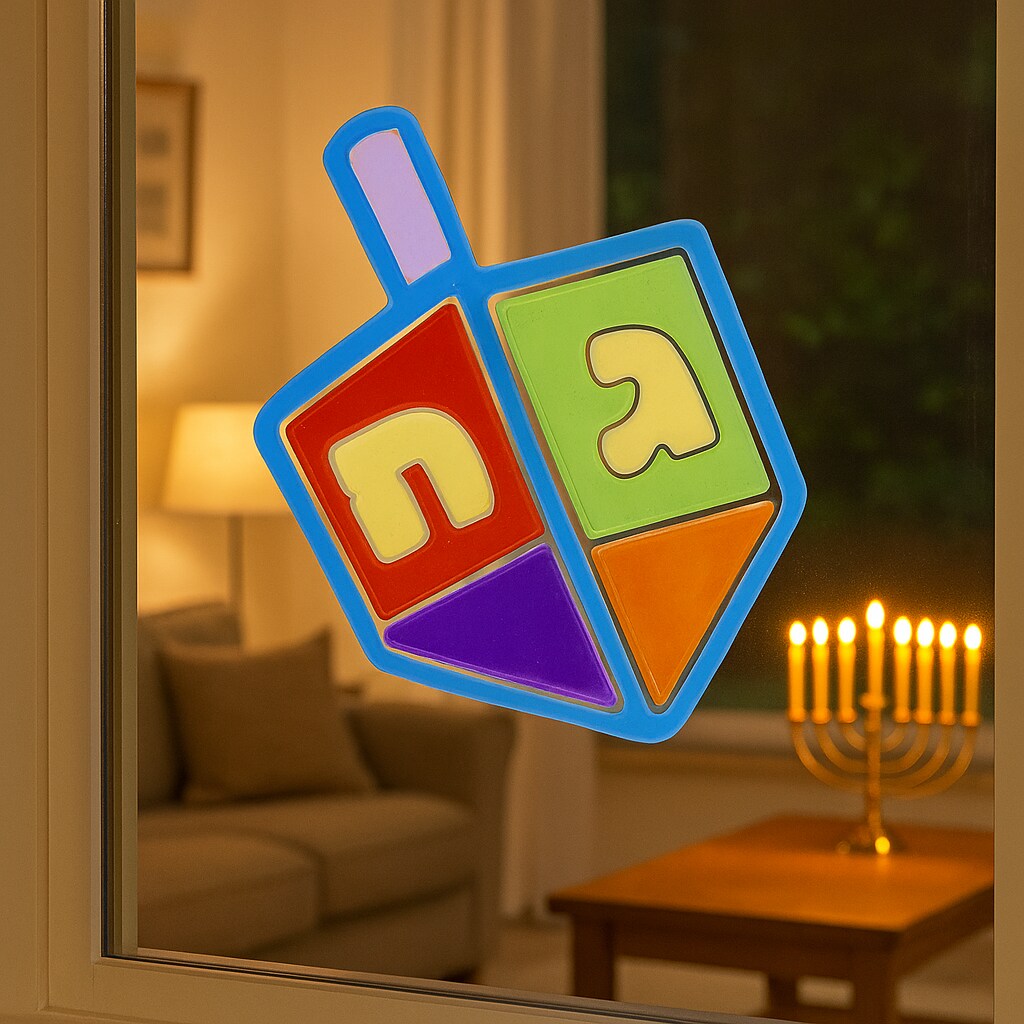 Dreidel Window Gel Decoration, Chanukah Reusable Window Cling