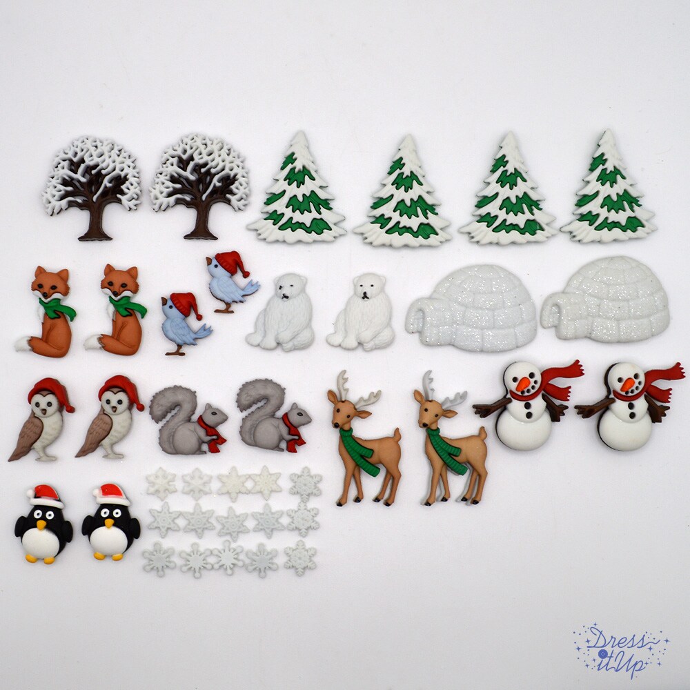 Dress It Up Buttons Winter Wonderland Super Value Pack, 30pcs+ Sewing Shank Embellishments