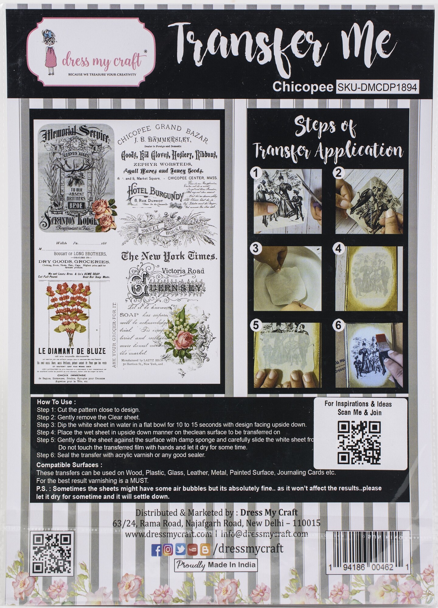 Dress My Craft Transfer Me Sheet A4-Chicopee