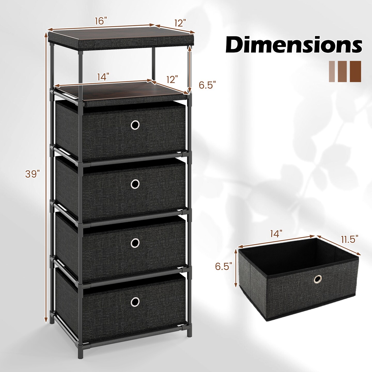 Dresser with Fabric Drawers and Metal Frame for Storage and Display Space