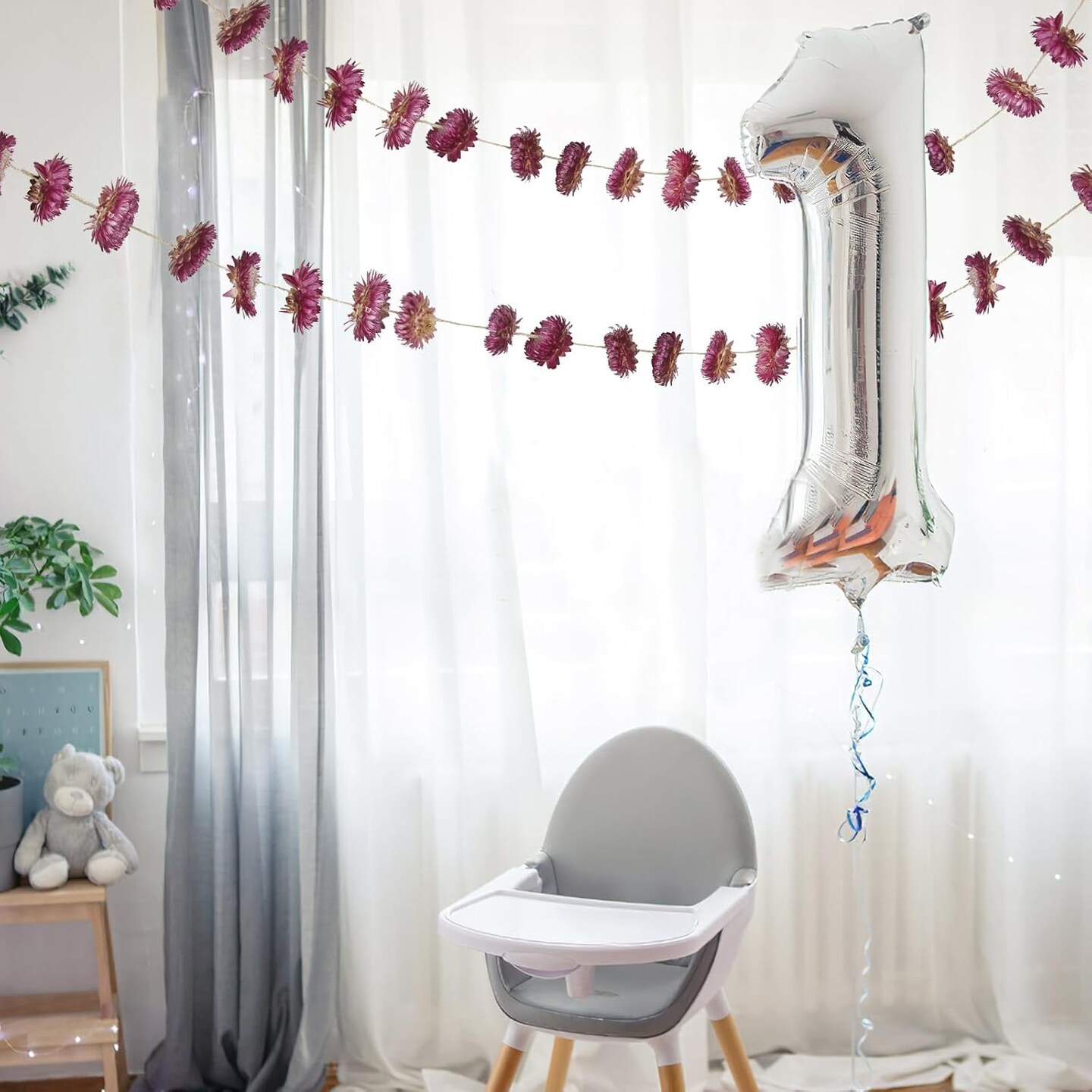 Dried Flower Garland – 10.5 ft with 63 Natural Daisy & Sunflower Heads for Wedding, Boho, Home, Party & Wall Hanging Décor