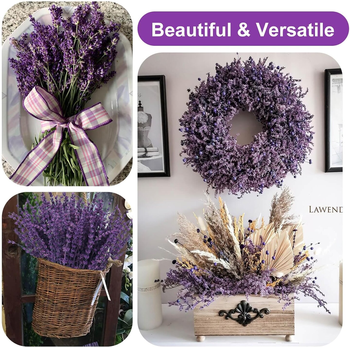 Dried Purple Lavender Flowers Bundle-Dried Preserved Lavender Bouquet 8-12" for Shower Weeding Home Vase Decor, Crafts, Aromatherapy, Fragrance, Fresh Silk Dry Live Plants, 90g(3.17oz)