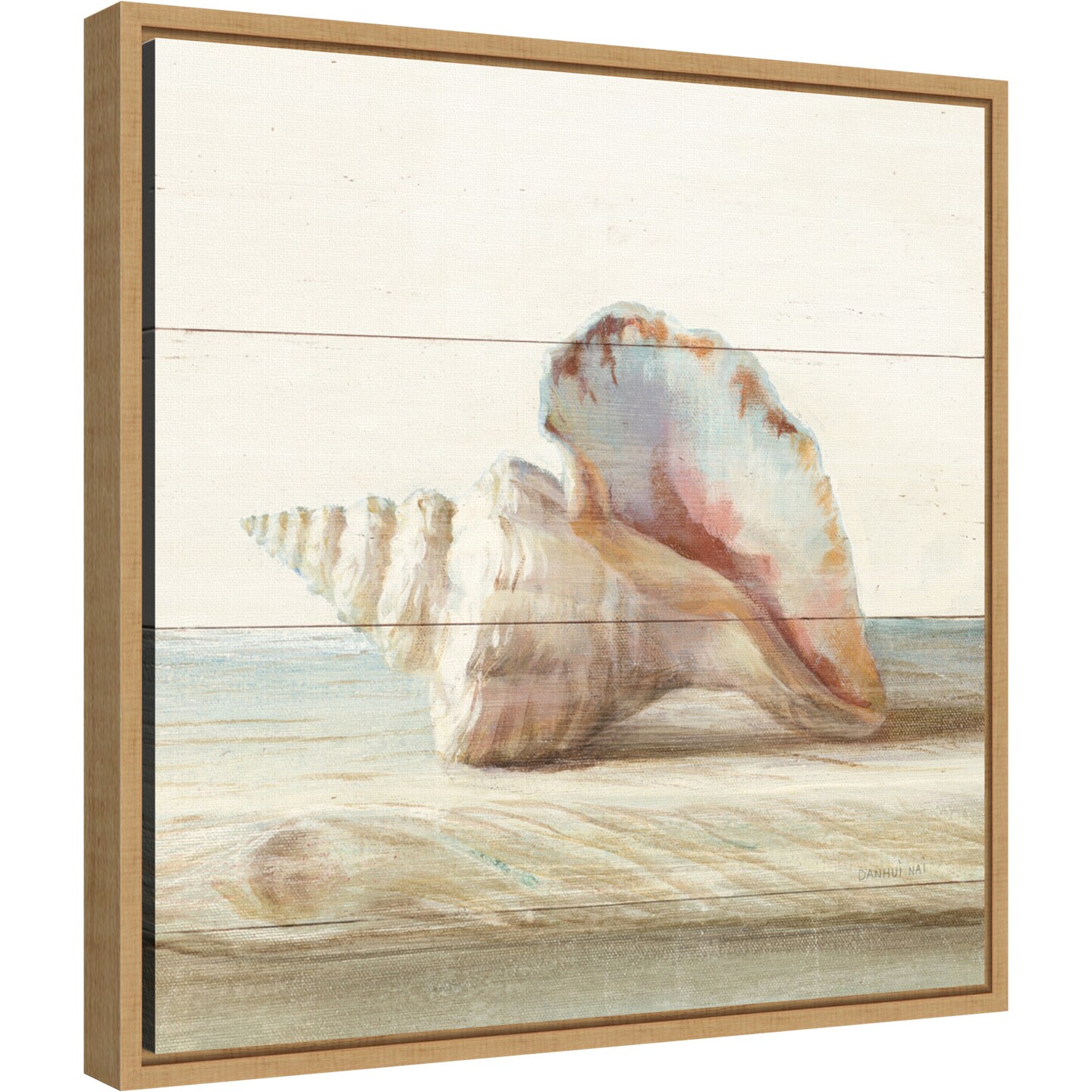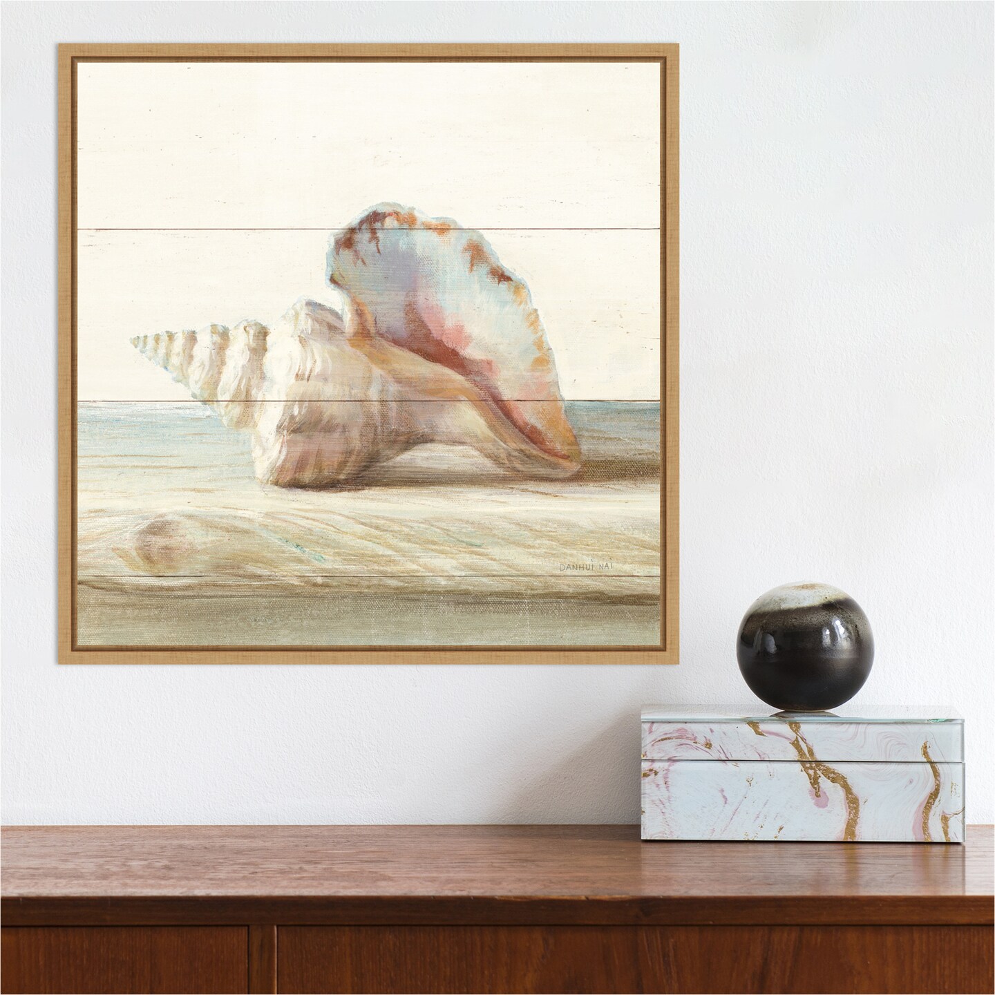 Driftwood Shell IV by Danhui Nai 16-in. W x 16-in. H. Canvas Wall Art Print Framed in Natural