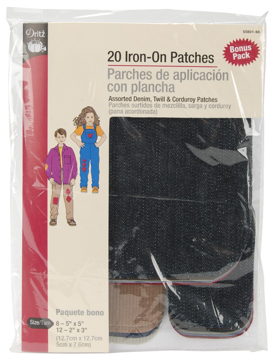 Dritz Iron-On Patches 20/Pkg-Dark Assortment