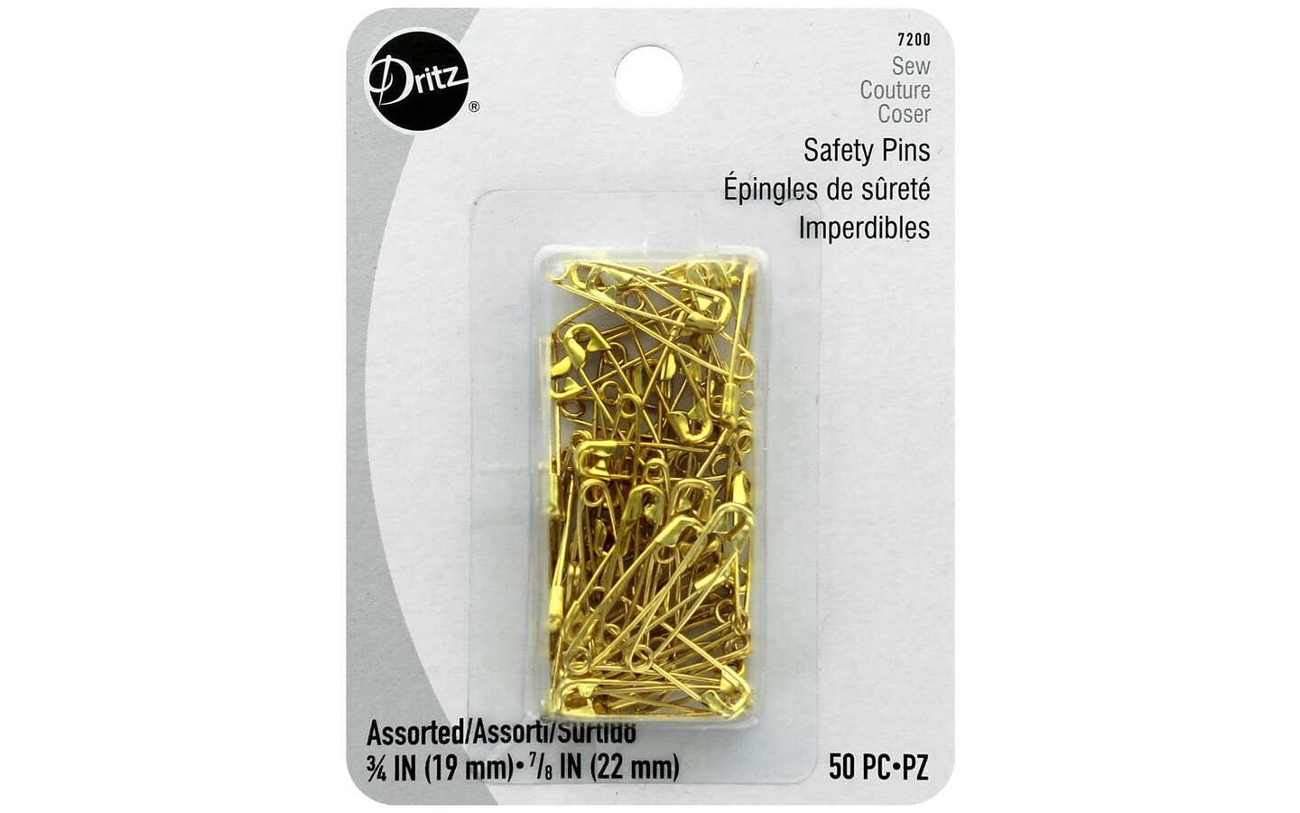 Dritz Safety Pins Size 0&00 Gilt 50Pc