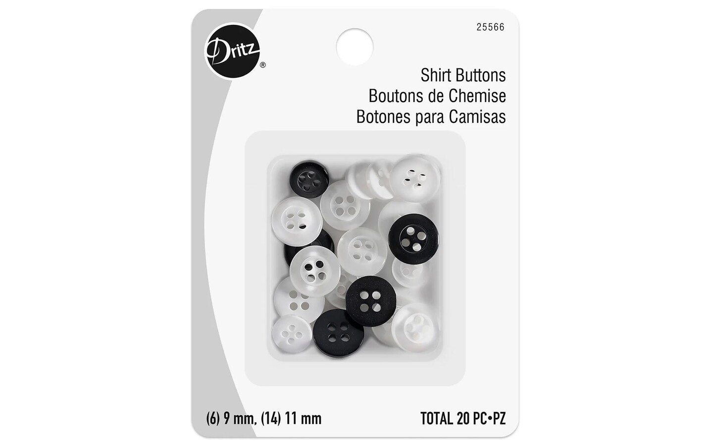 Dritz Shirt Buttons 4 Hole 11mm White & Black 20pc