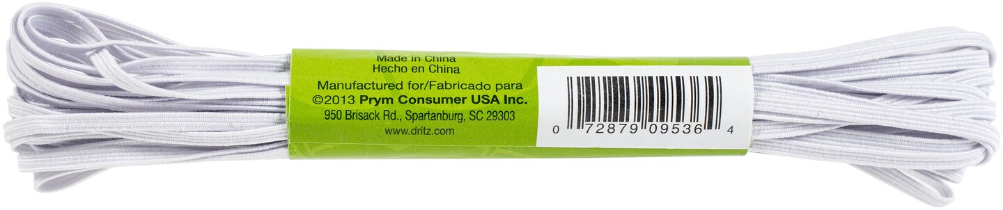 Dritz Soft Stretch Braided Elastic 1/8"X9yd-White