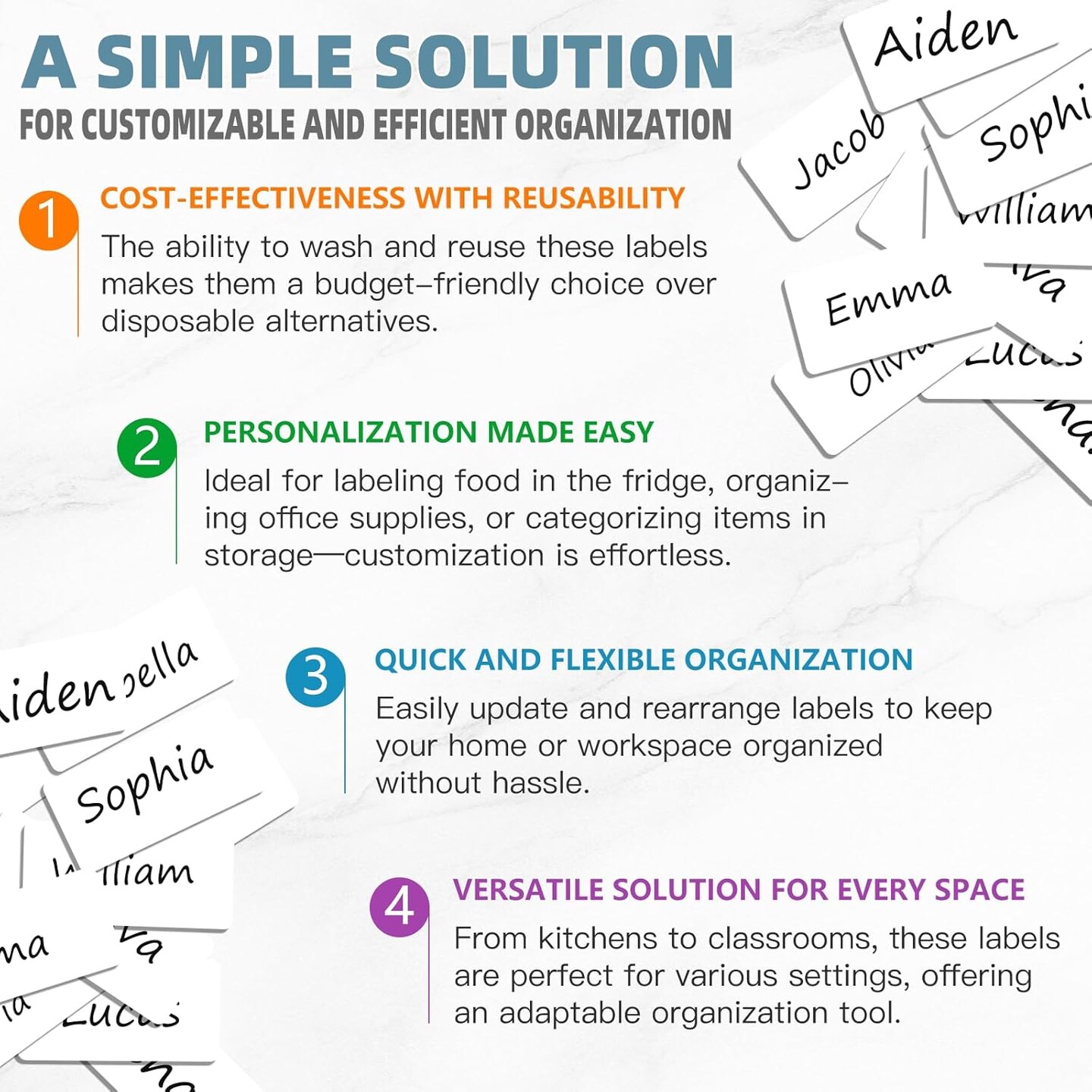 Dry Erase Labels Sticky Notes for Containers, Reusable Waterproof Removable Stickers for Organizing, Freezer, Kitchens, Classroom, Whiteboard, All Purpose Use