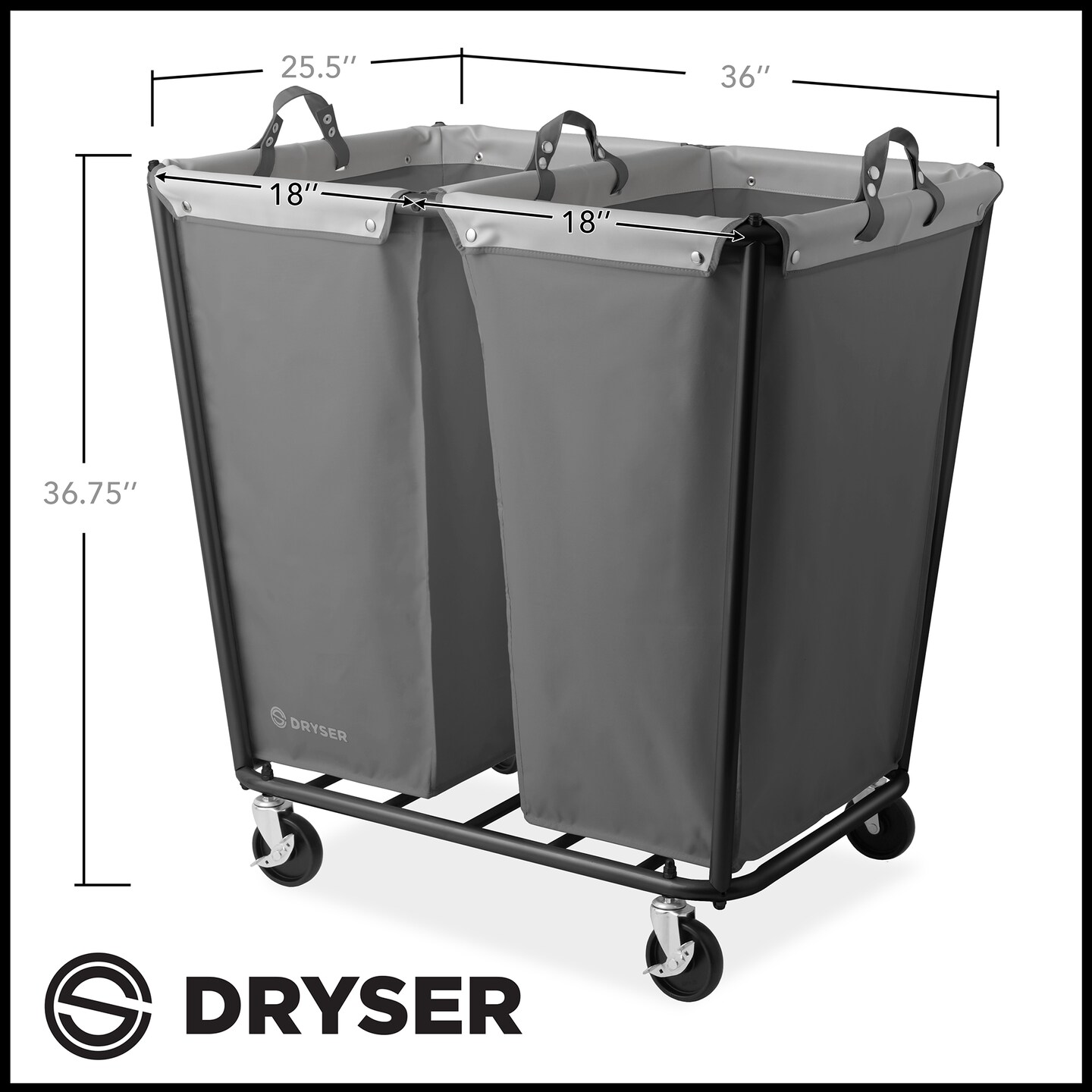 Dryser Commercial Heavy-Duty Rolling Laundry Hamper, Steel Frame Cart on Wheels with Removable Canvas Bin for Hotel or Home