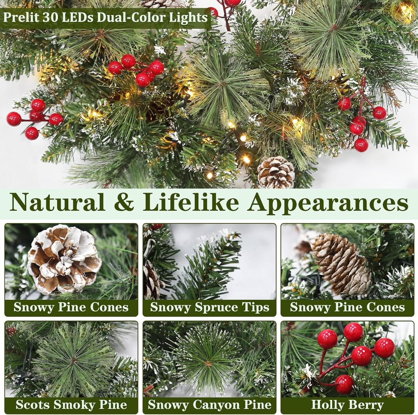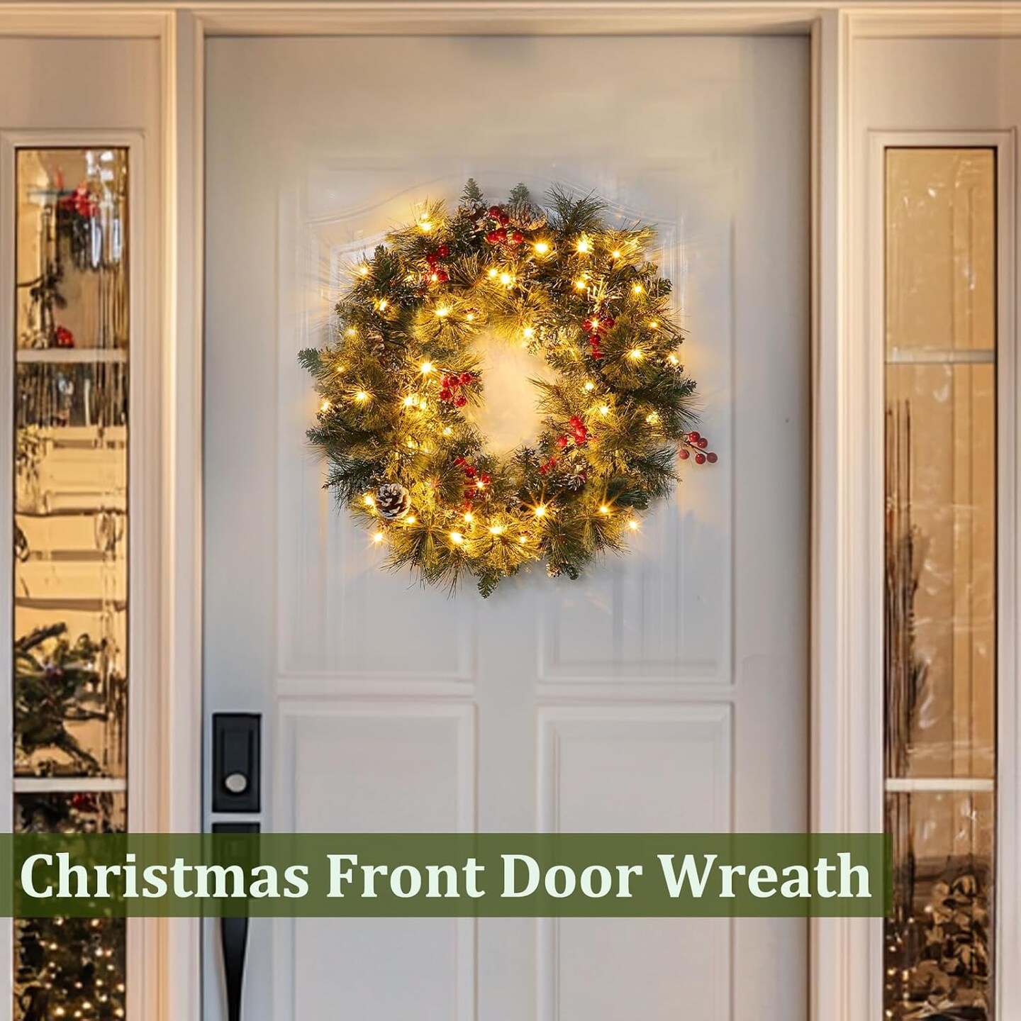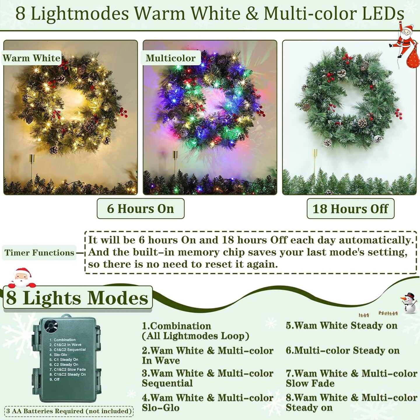 Dual Color Change&Timer-Prelit Christmas Wreaths for Front Door (Green/White) 20"D x 20"W x 4"H