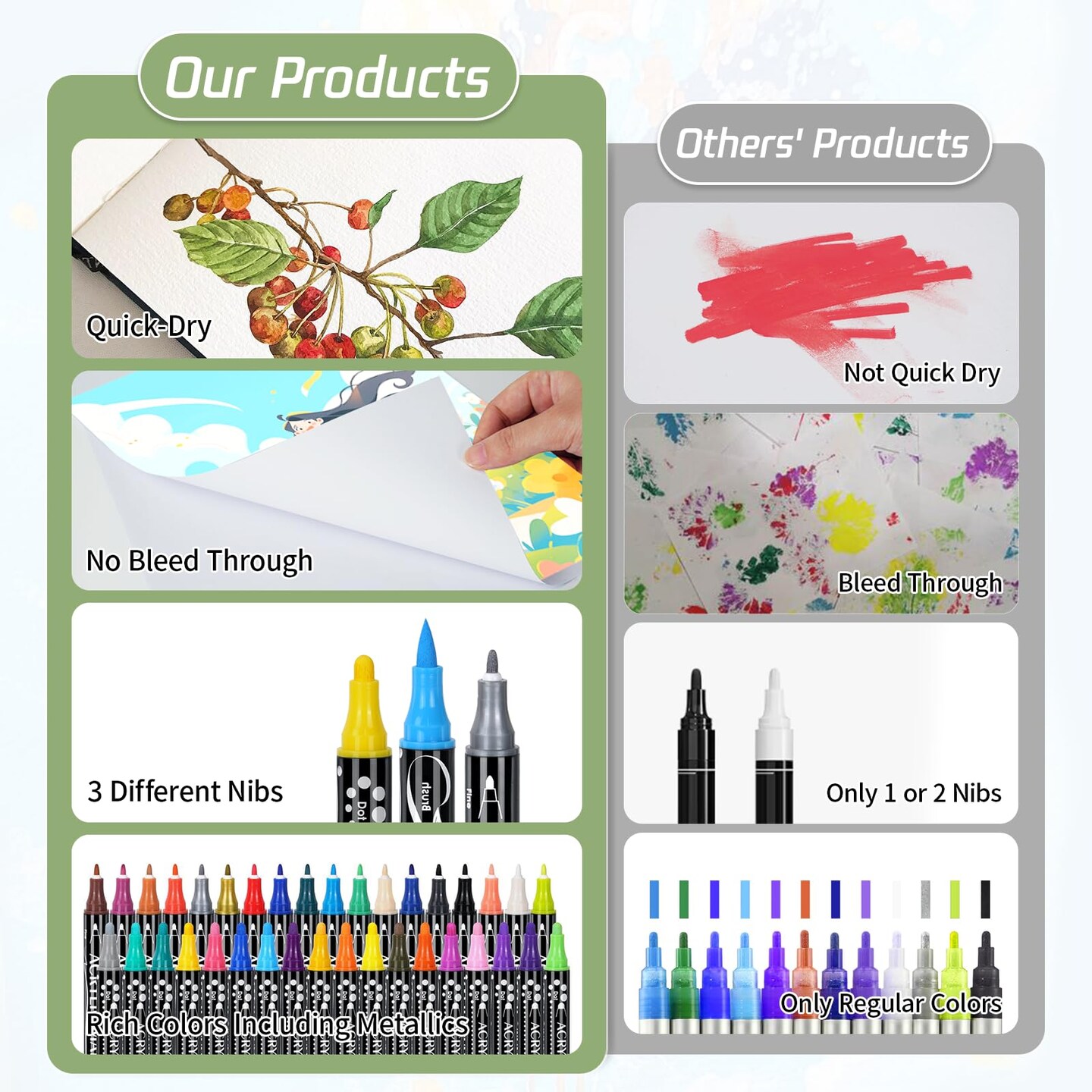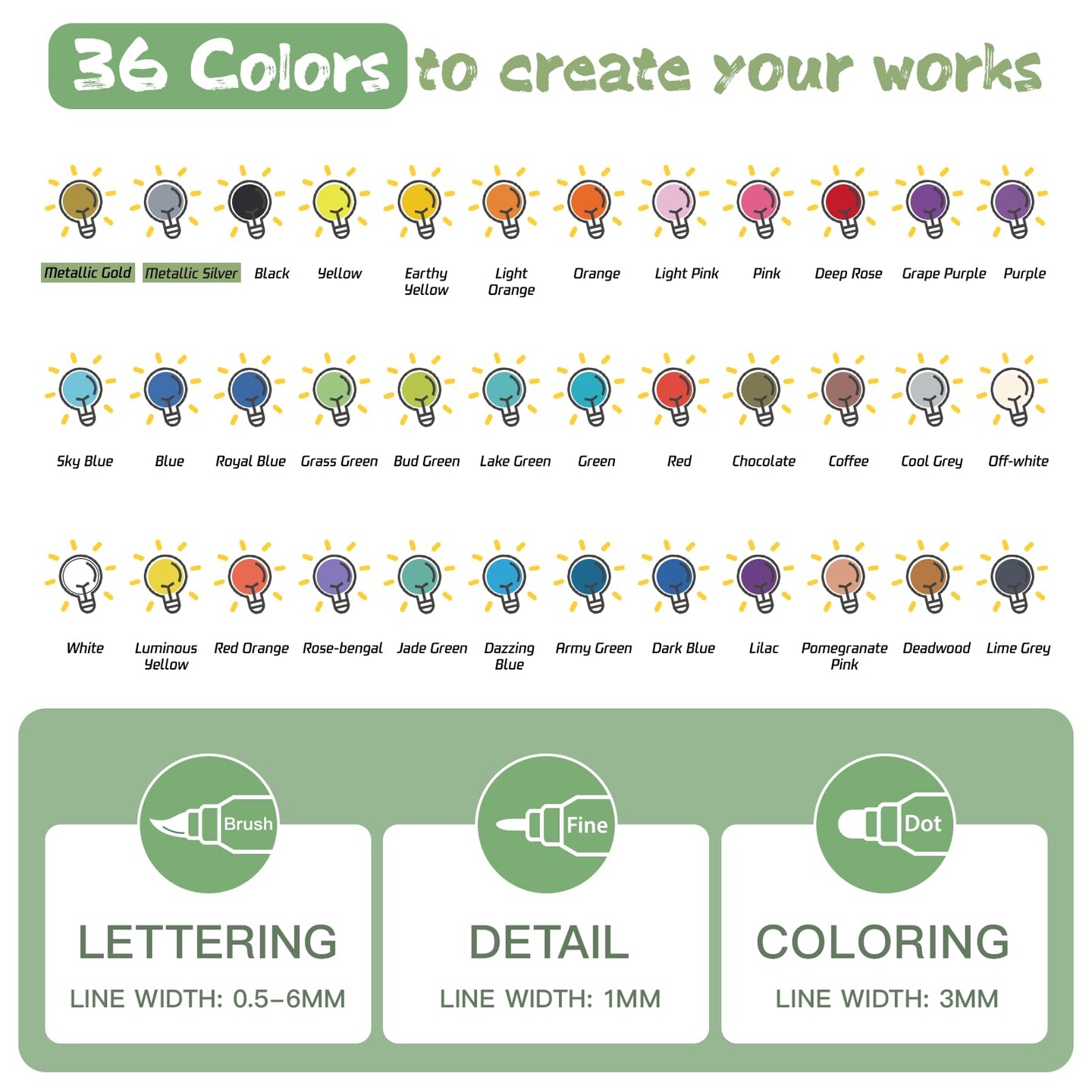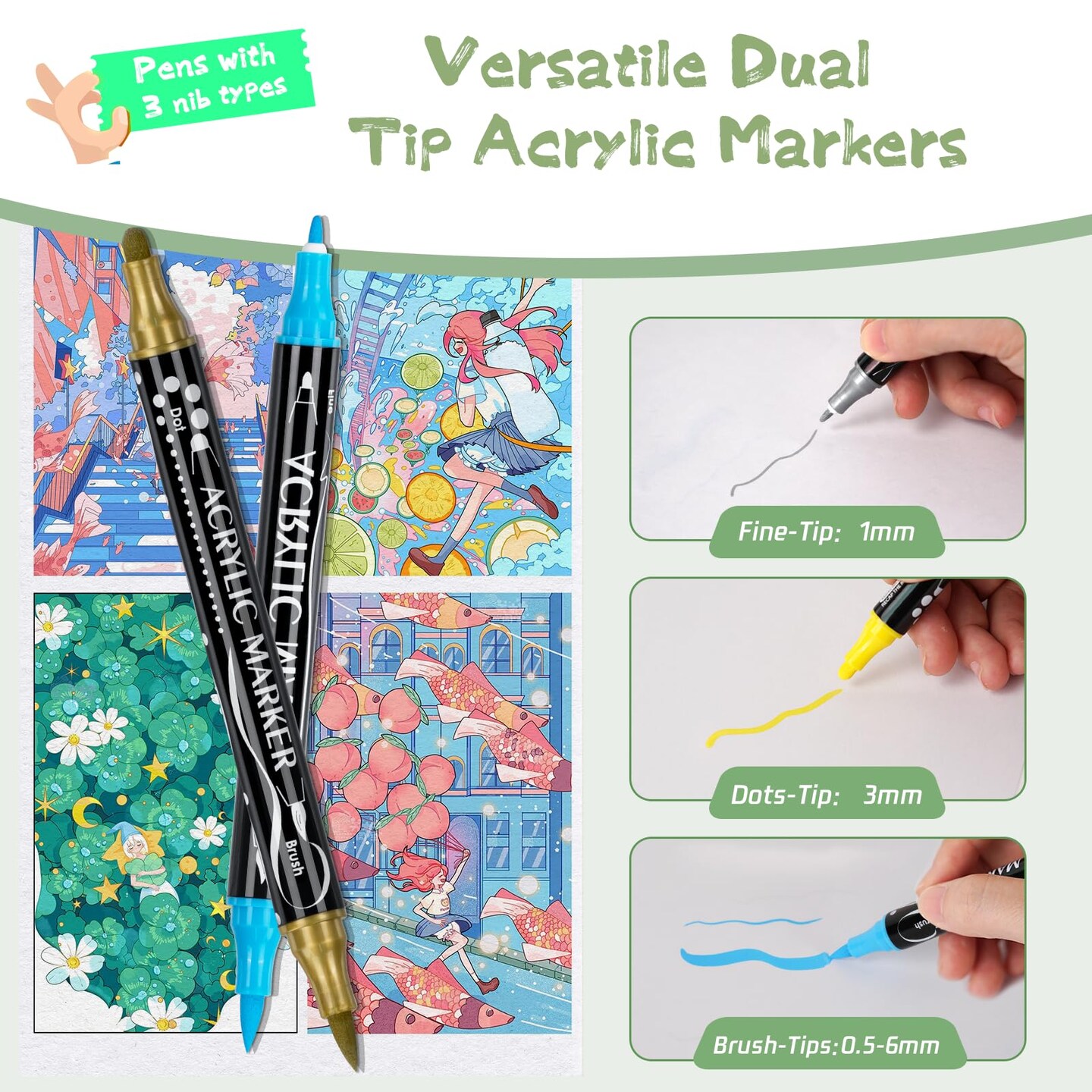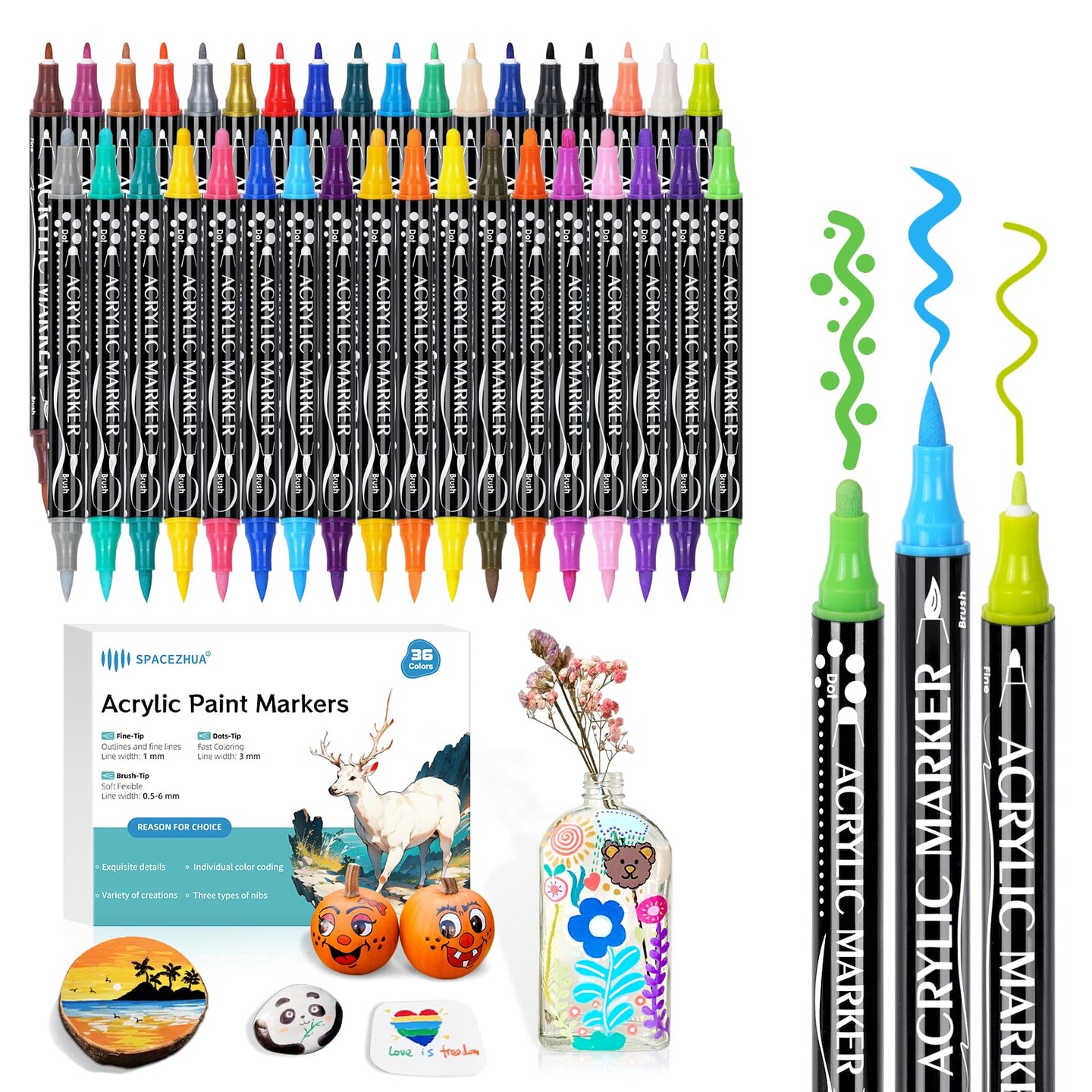 Dual Tip Acrylic Markers Paint Pens 36 Colors Coloring Markers Art Supplies for Adults Teens Kids, Acrylic Paint Painting Set for Rock, Stone, Wood, Glass, Canvas, Fabric, Ceramic, DIY Craft Ornaments