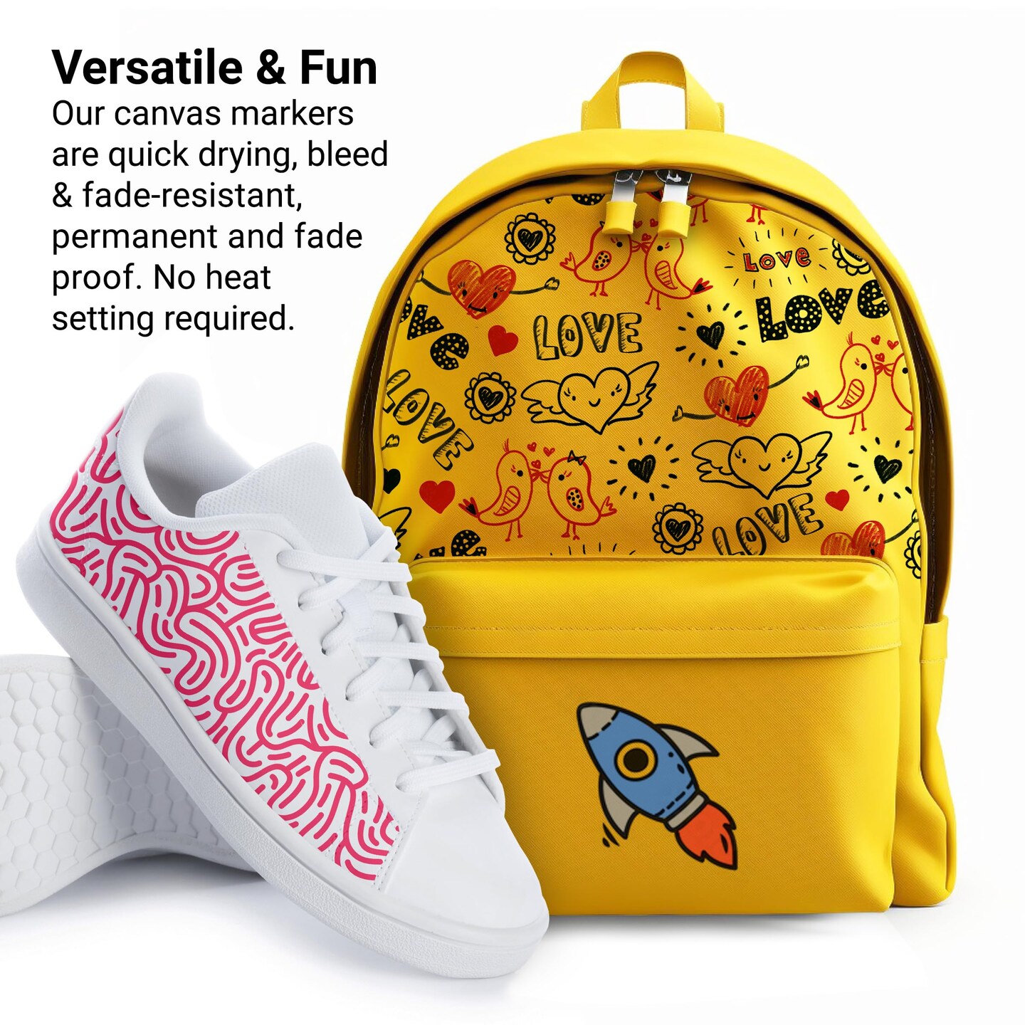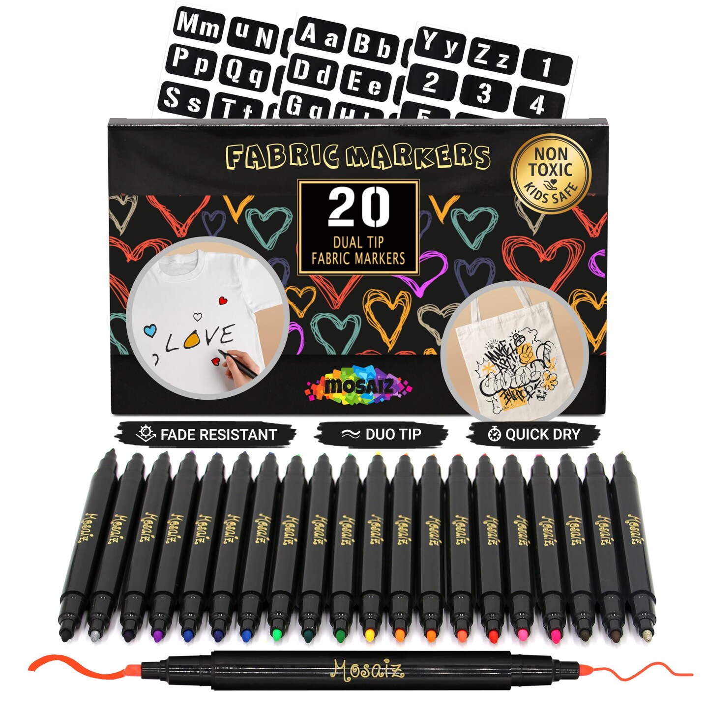 Dual Tip Fabric Markers, 20 Chisel and Fine Tip Markers Fabric Paint Pens for Fabric Decorating with Gold and Silver Colors including Numbers and Letter Stencils