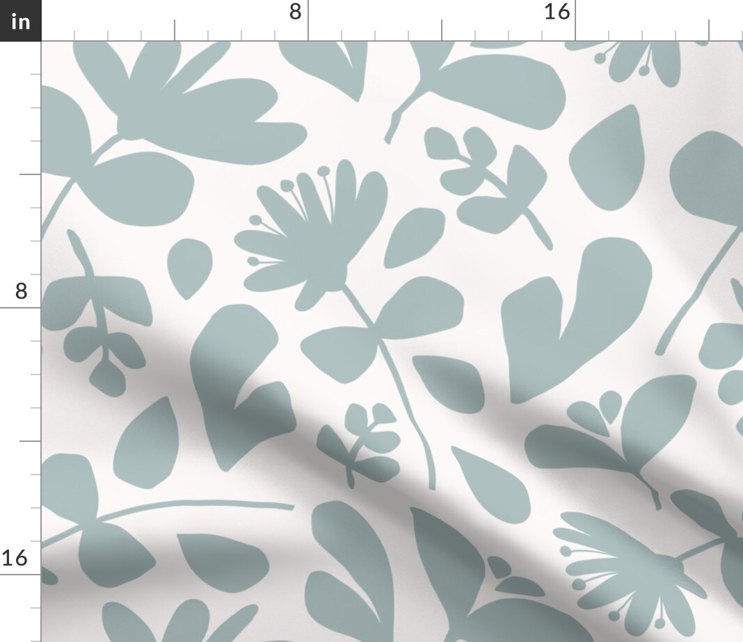 Duck Egg Blue Modern Floral Silhouette Pressed Flowers Botanical Boho Chic Large Scale Custom Printed Fabric by Spoonflower Various Fabrics by the Yard or Fat Quarter