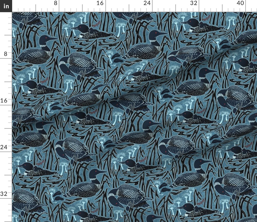 Ducks In Wetlands Birds Pond Wildlife Loon Water Bird Lakeside Lake House Birding Animals Swamp Custom Printed Fabric by Spoonflower Various Fabrics by the Yard or Fat Quarter