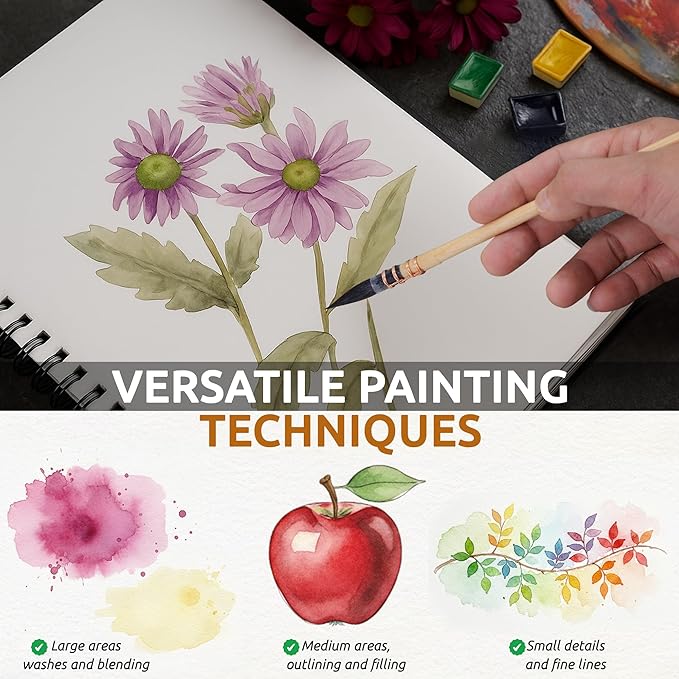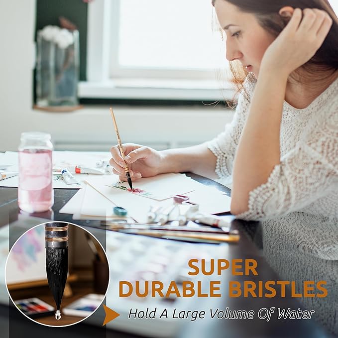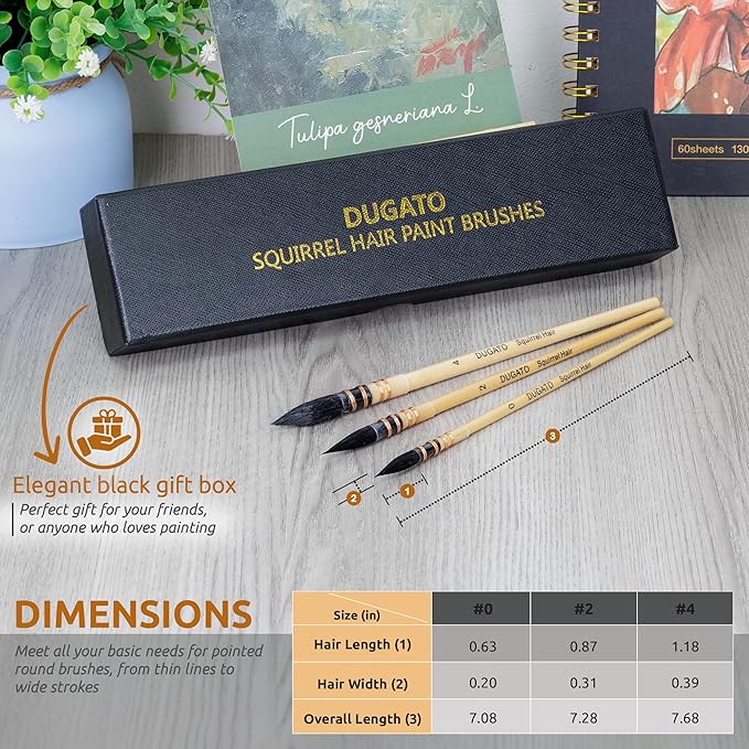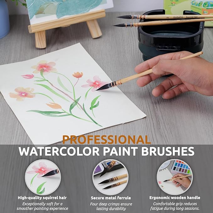 DUGATO Professional Real Squirrel Hair Watercolor Brush Set – 3pc Natural Mop Round Brushes for Wash, Gouache & Fine Detail – High-Capacity Squirrel Hair Paintbrushes for Watercolor, Acrylic & Ink