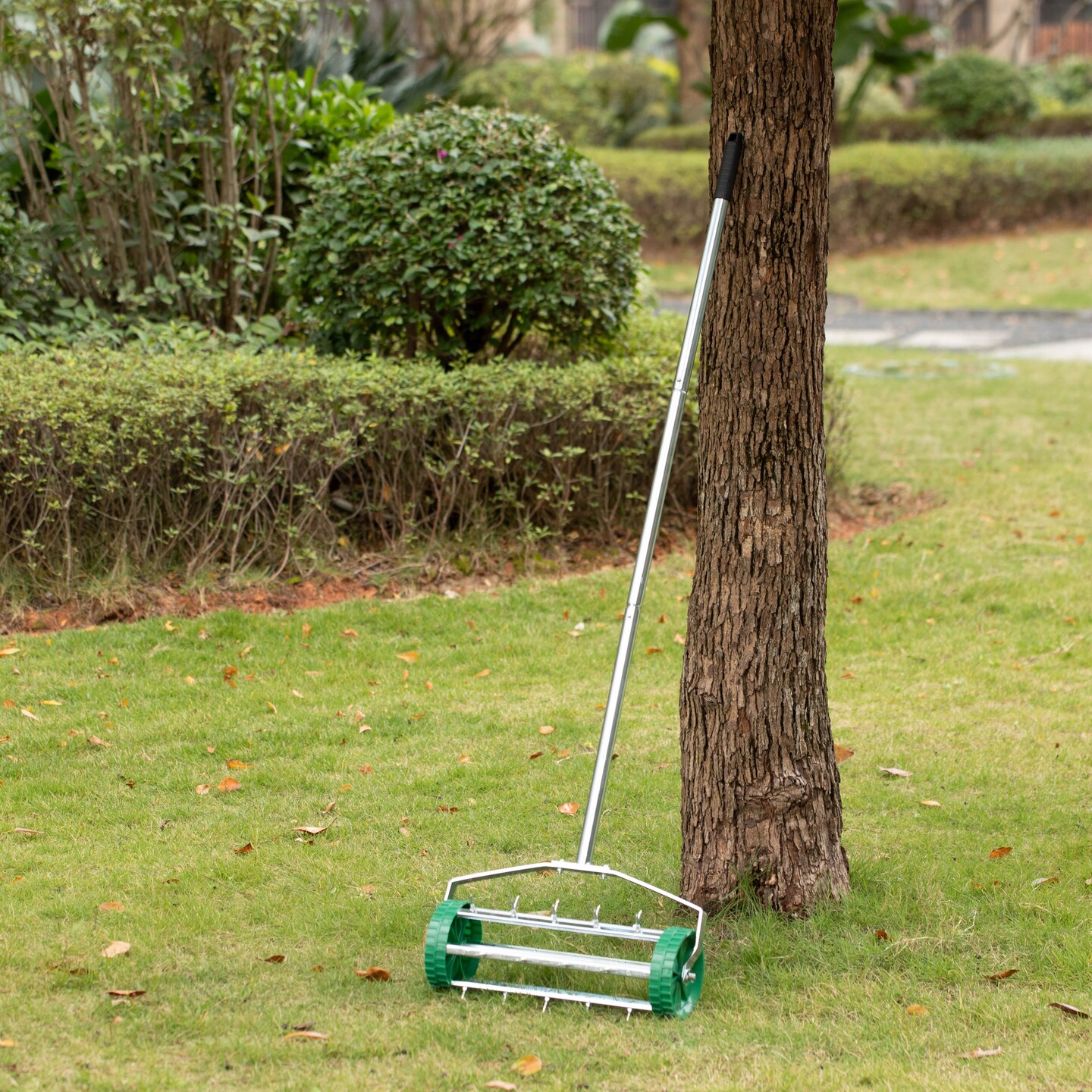 Durable Rolling Spike Lawn Aerator with Sturdy Steel Handle and Sharp Metal Tines to Promote Thick, Deep, and Healthy Grass Growth