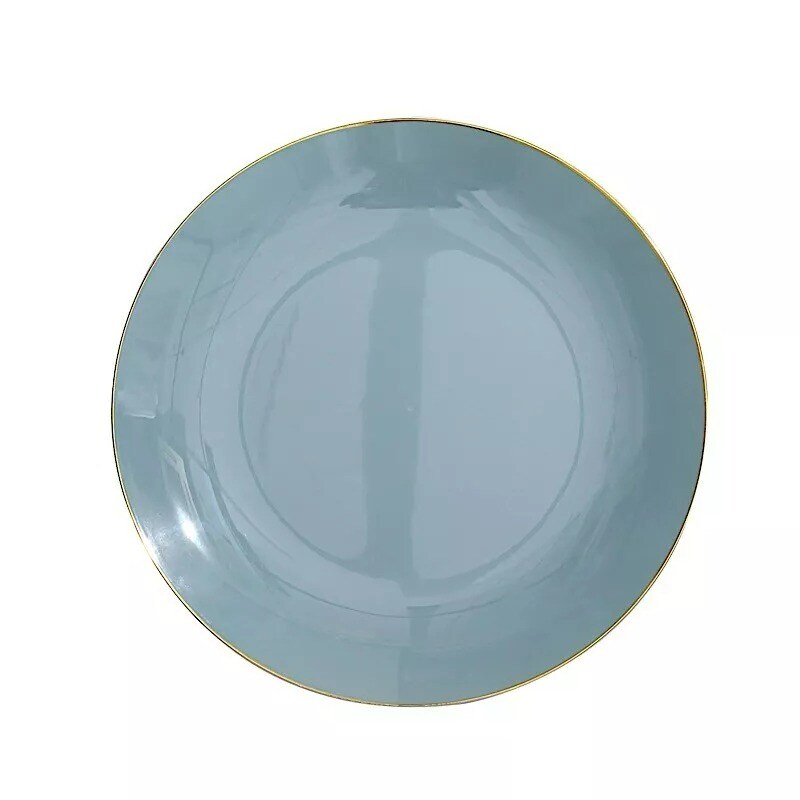 DUSTY BLUE 10 Glossy 10" Round Plastic Salad PLATES Gold Rim