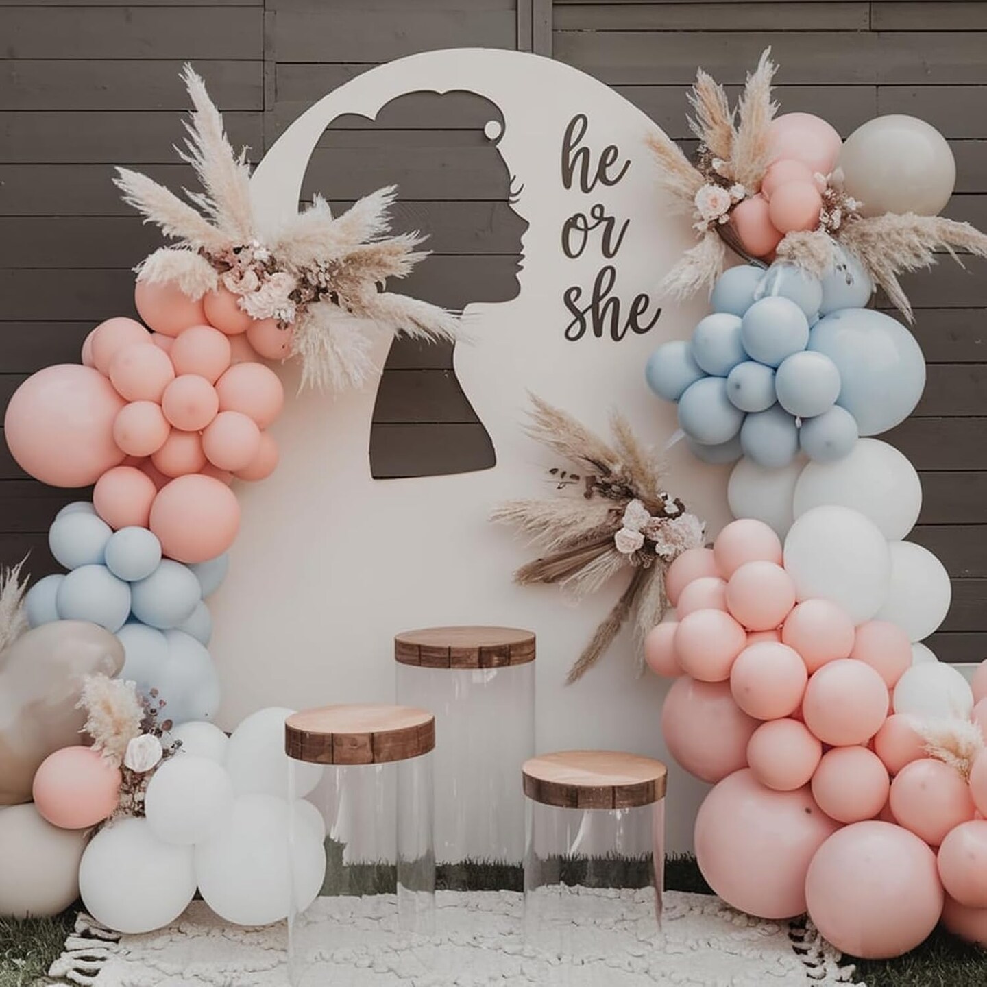 Dusty Blue and Pink Balloons, 50pcs Retro Pink and Blue Balloons, Rose Gold Balloon Metallic Light Balloon for Girl Boy Boho Baby Shower Wedding Gender Reveal Decorations