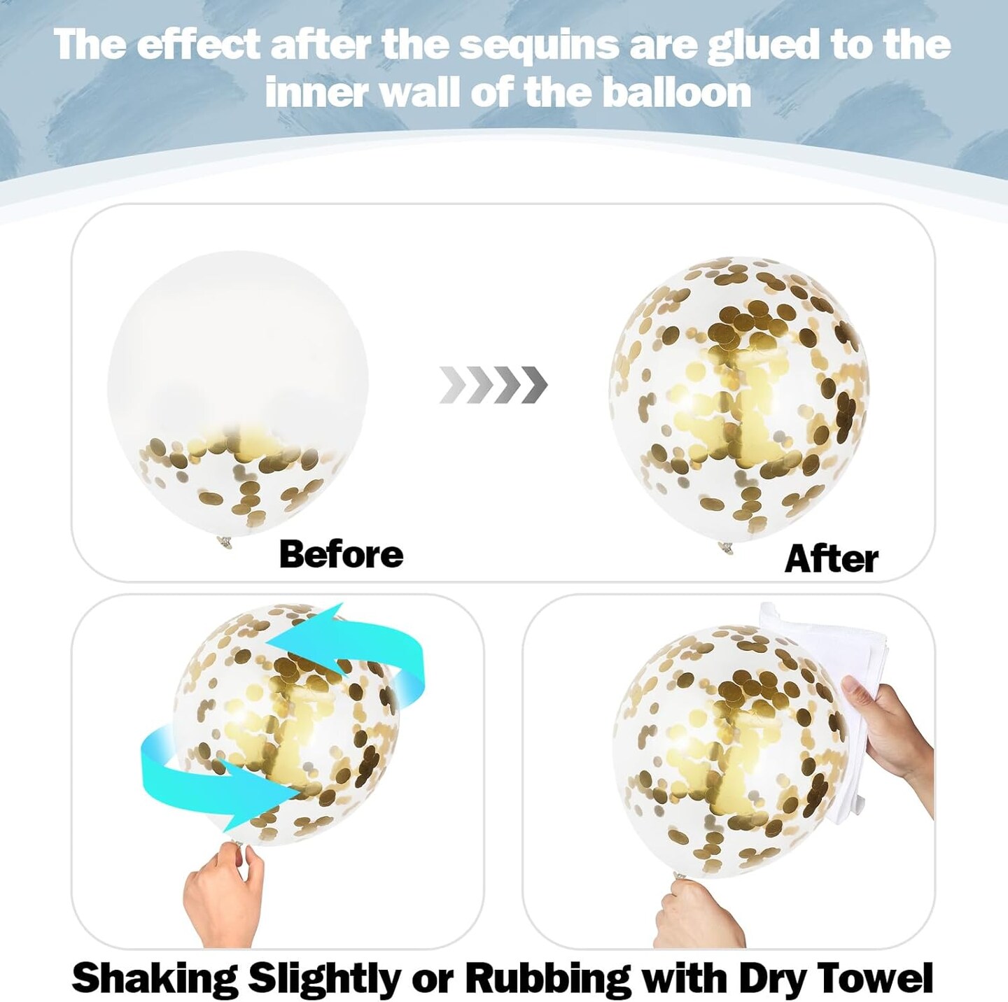 Dusty Blue Balloon Set, 60Pcs 12 Inch Slate Baby Blue White Sand Latex Balloon with Metallic Confetti Champagne Gold Helium Balloons for Birthday Party Baby Bridal Shower Boho Decortaions Supplies