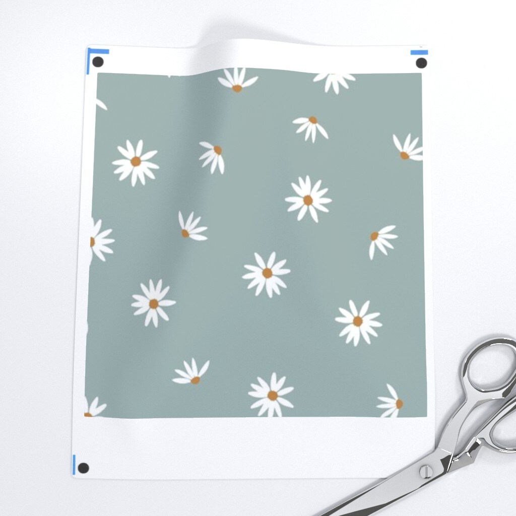 Dusty Blue Floral Ditsy Coneflower White Flowers Small Scale Boho Kids Whimsical Meadow Custom Pre-pasted Wallpaper by Spoonflower Pre-Pasted Wallpaper 2FT Wide