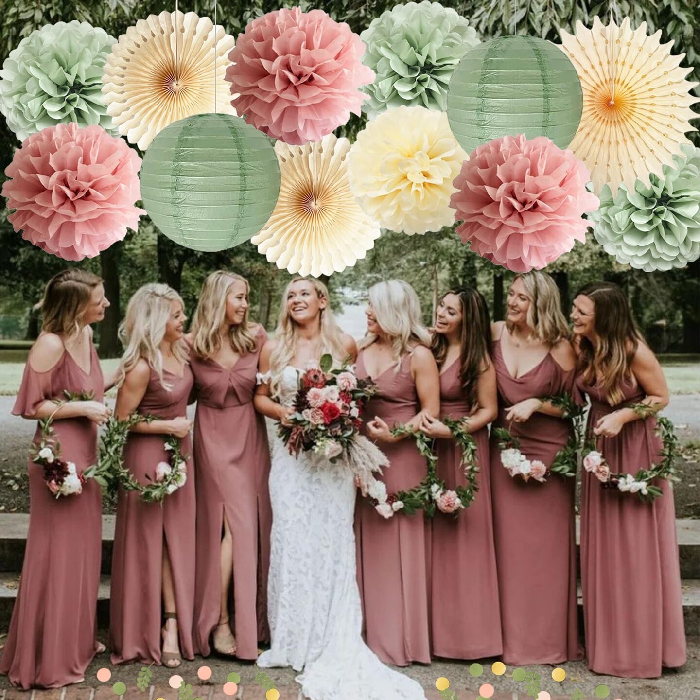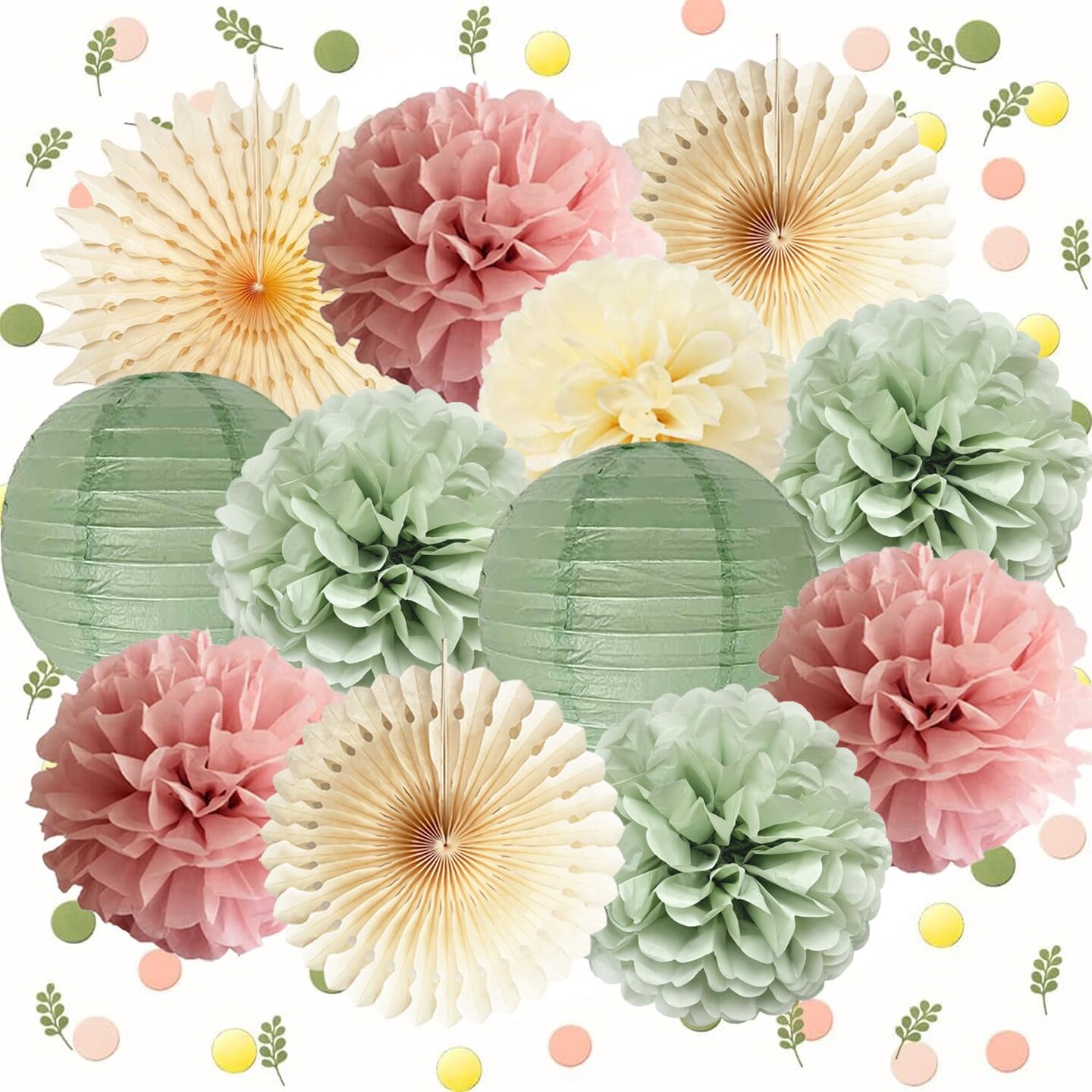 Dusty Pink and Sage Green Party Decoration(Sage Green, Dusty Pink, Cream)