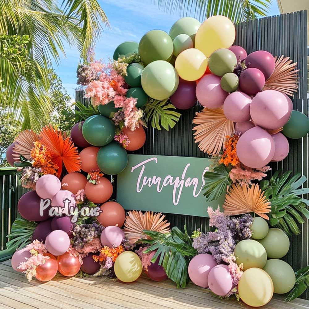 Dusty Pink, Green & Yellow Balloon Garland – Double-Stuffed Sage Green, Olive, Matte Pastel & Plum Balloons for Baby Shower, Birthday, Floral & Fall Party Decorations