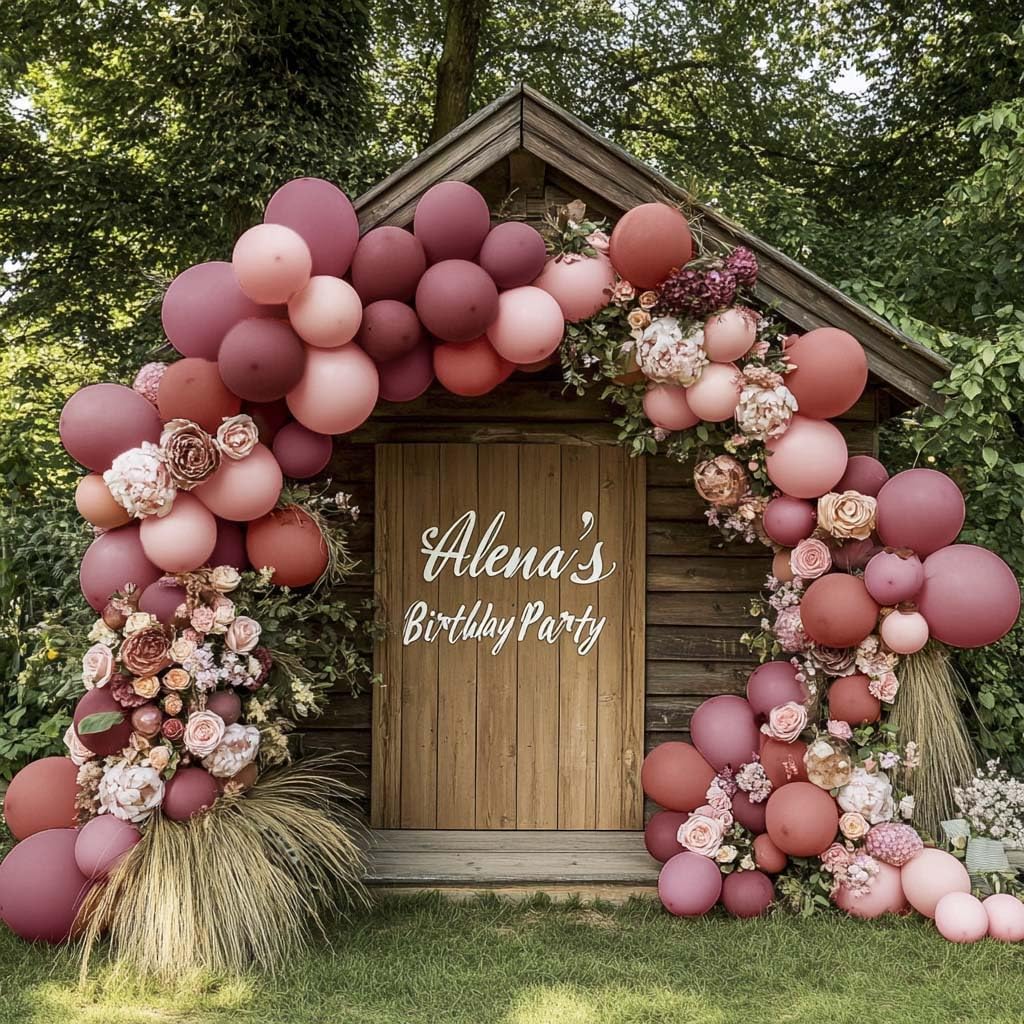 Dusty Rose Pink Balloon Garland Arch - Double Stuffed Dark Pink Balloons For Boho Birthday Baby Shower Bachelorette Bridal Shower Party Decorations