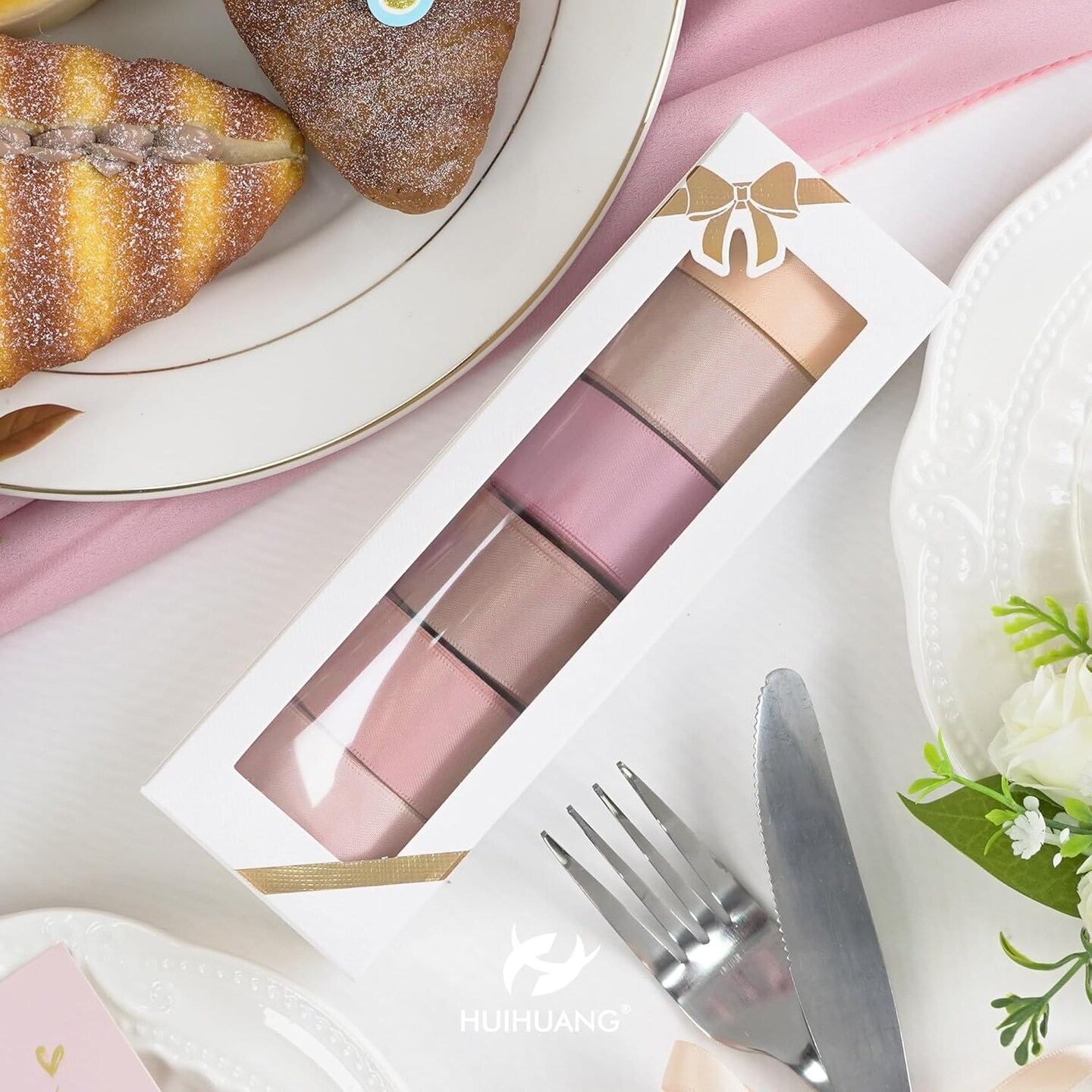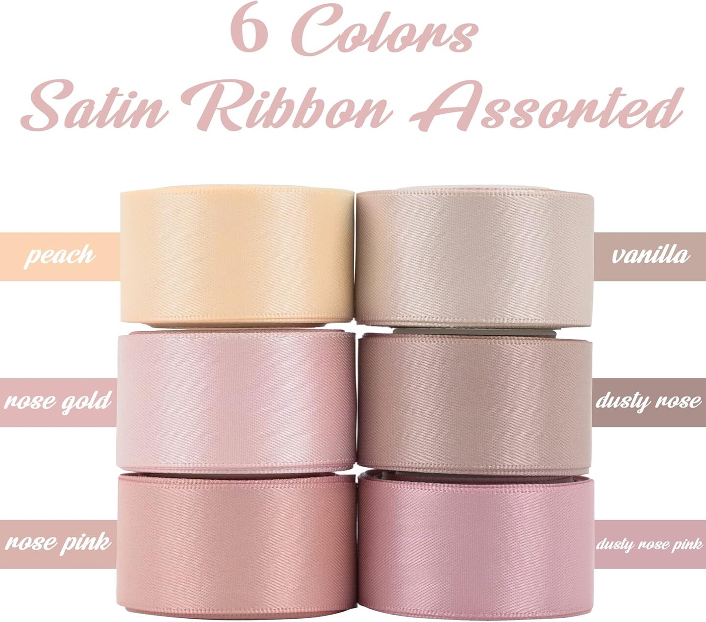 Dusty Rose Wedding Ribbon Double-Faced Satin Ribbon Assortment 1" Wide Rose Pink Silk Ribbons for Gift Wrap Wedding Bridal Baby Shower Decor Flower Bouquet Crafts- 6 Colors X 5 Yards Each