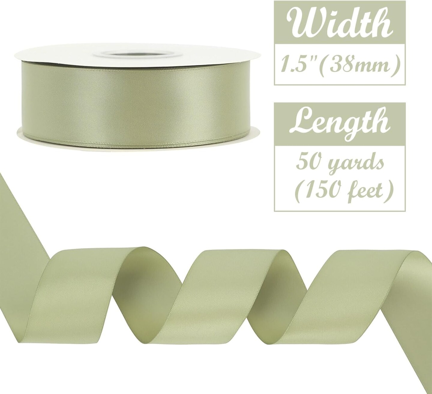 Dusty Sage Ribbon 1-1/2 inch Double-Faced Satin Ribbon