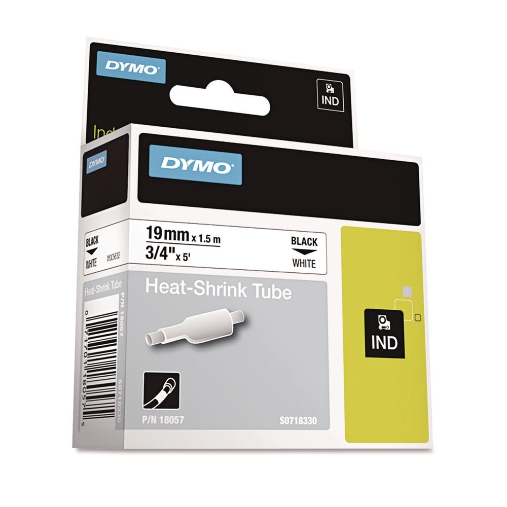 DYMO 0.75 in. x 5 ft. Rhino Heat Shrink Tubes Industrial Label Tape - White/Black Print (1-Roll)