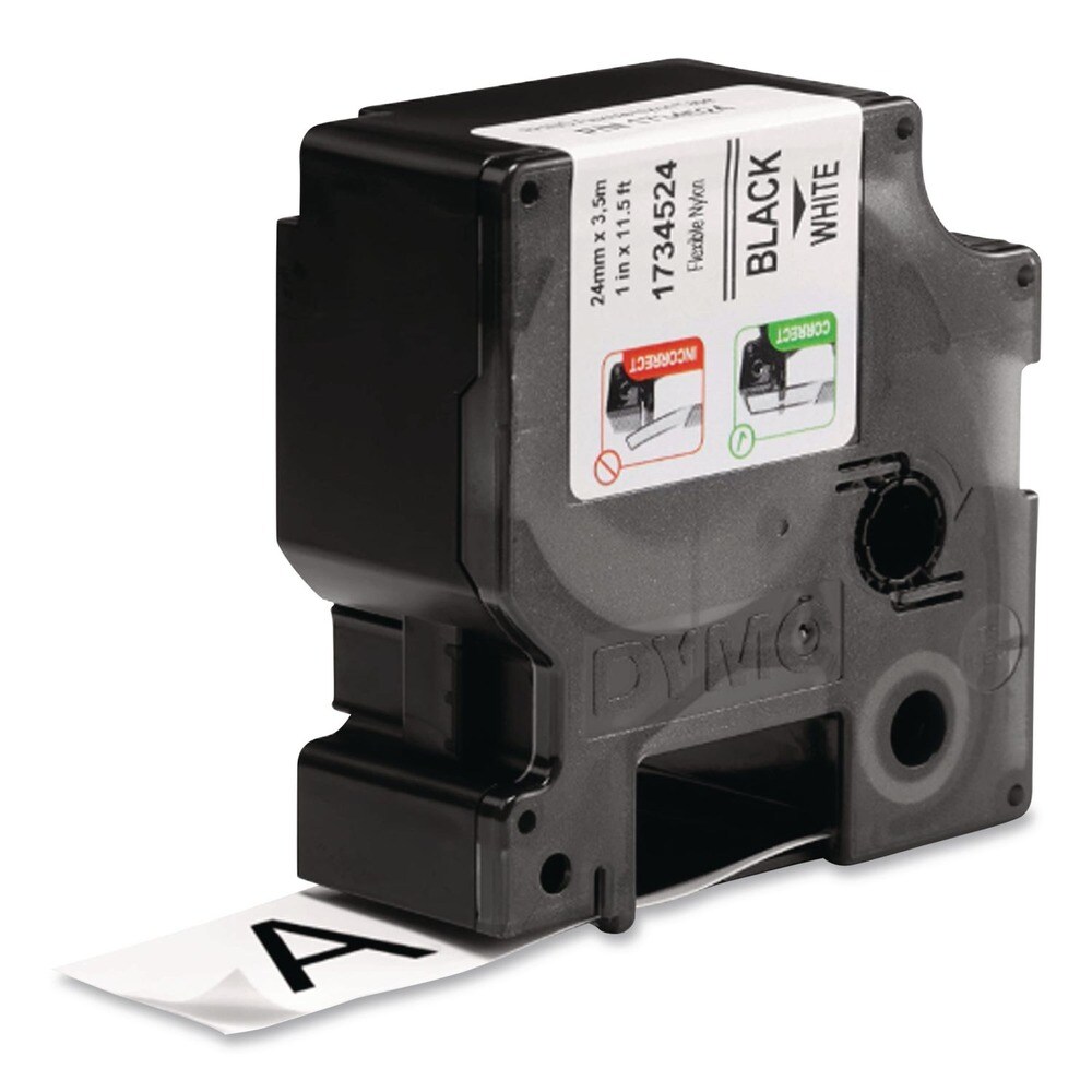 DYMO Rhino 1 in. x 11.5 ft. Flexible Nylon Industrial Label Tape - White/Black Print (1-Roll)