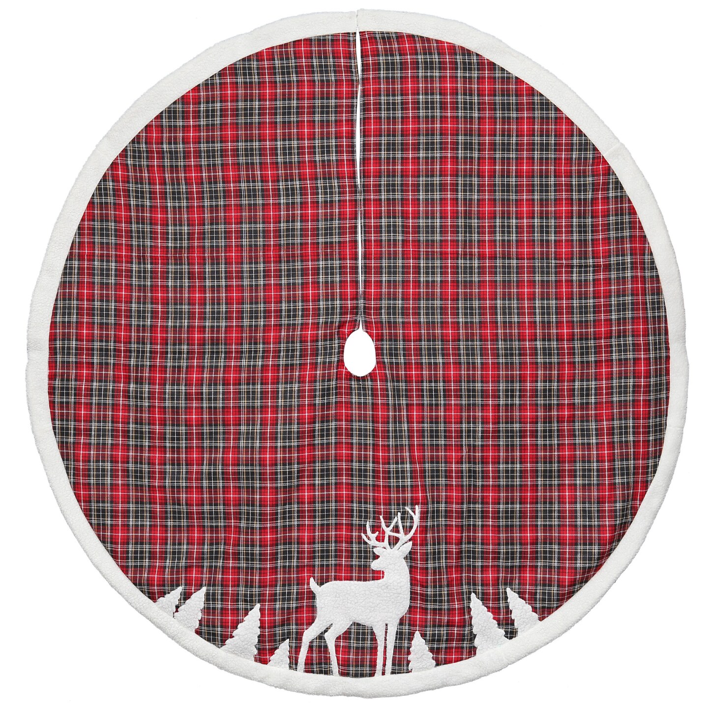 Dyno 48" Red and Black Plaid Reindeer Christmas Tree Skirt
