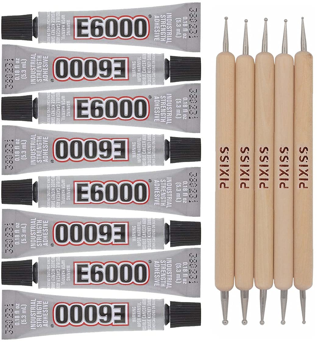 E6000 8-Pack 0.18 Ounce Bottles, Pixiss Wooden Dotting Stylus Pens