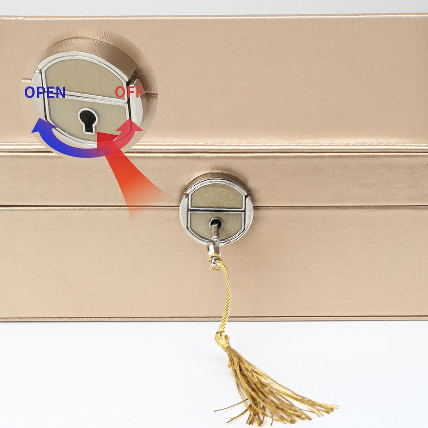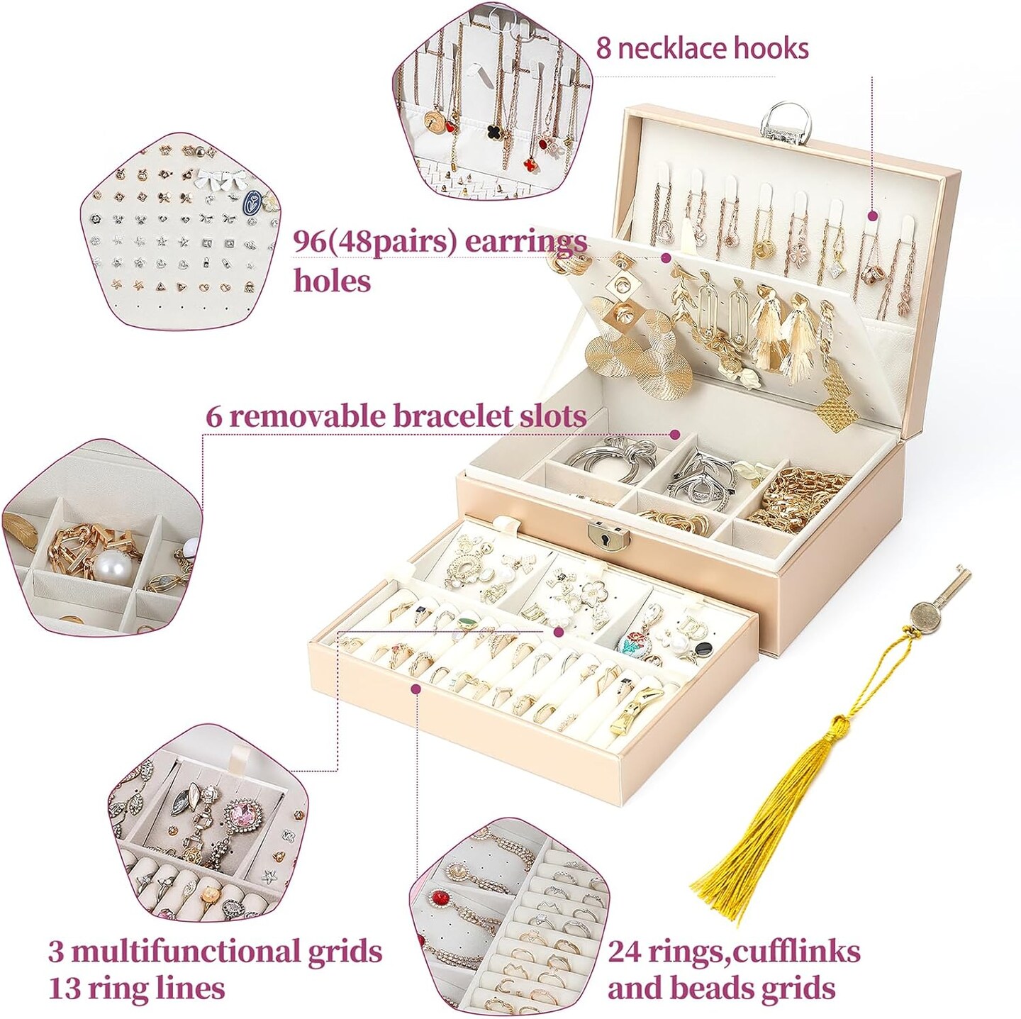 Earring Jewelry Box For Women Girl Stud Organizer, 4 Layers Girl Jewelry Organizer Box With Lock Earring Holder Organizer Necklace Ring Jewelry Organizer Box For Girls (Champagne, 4 layer)