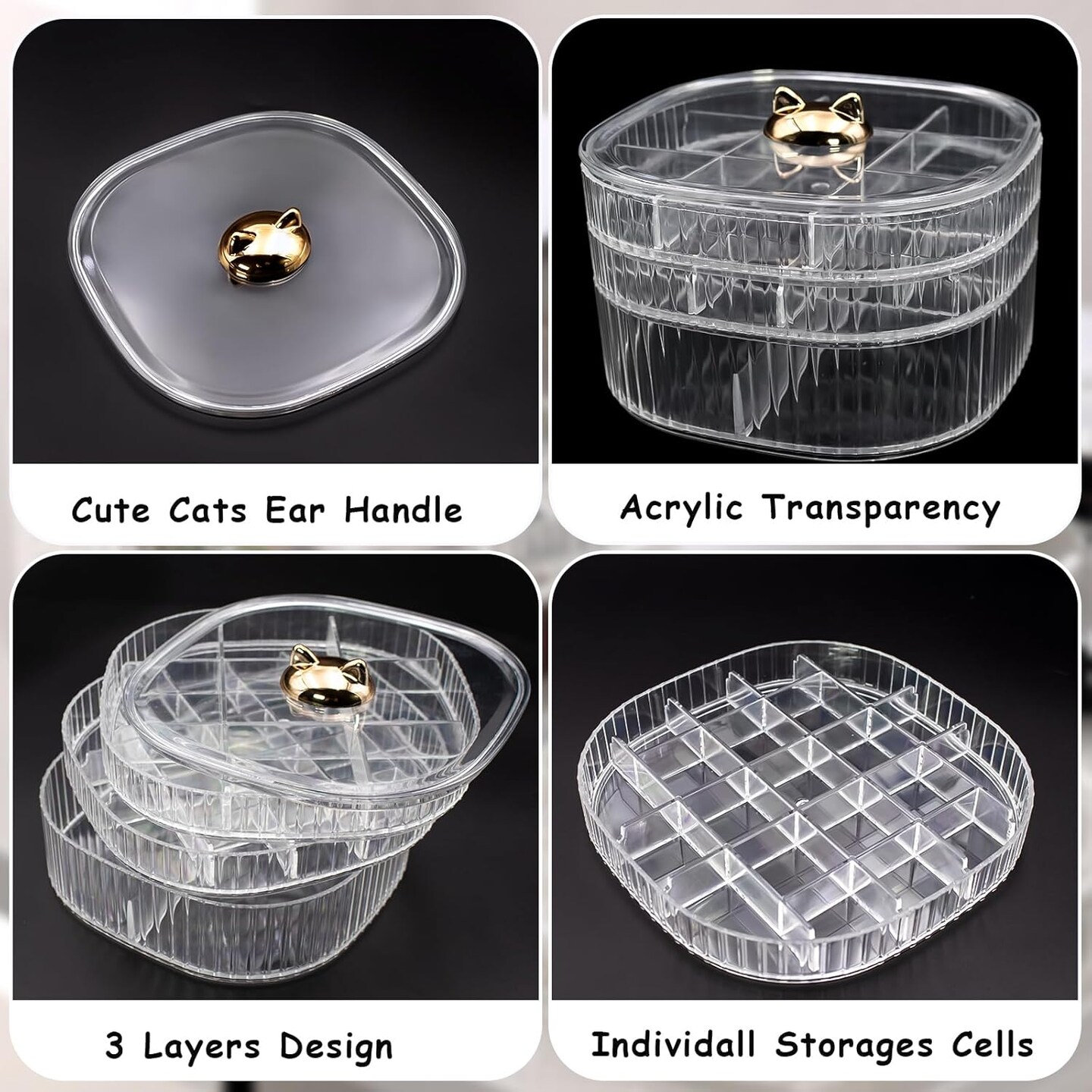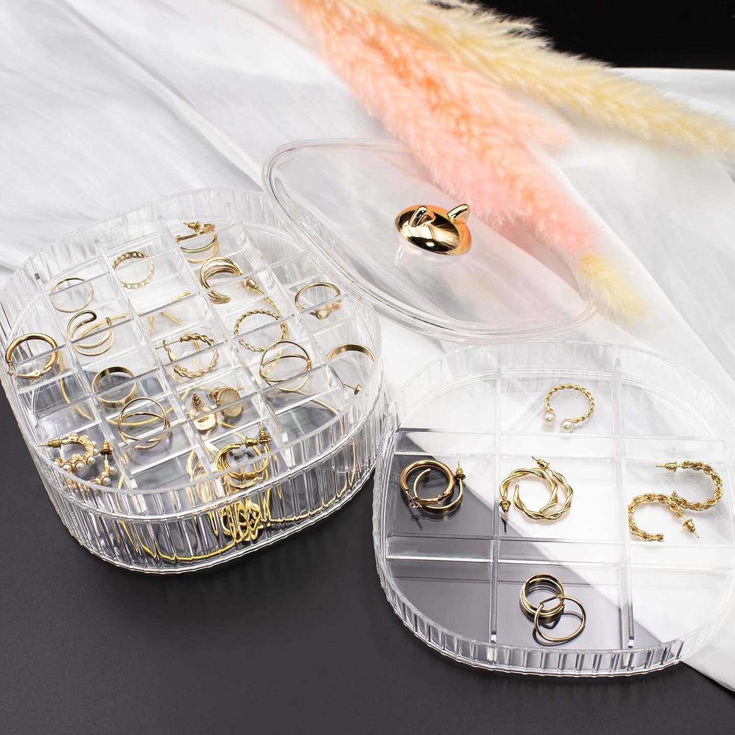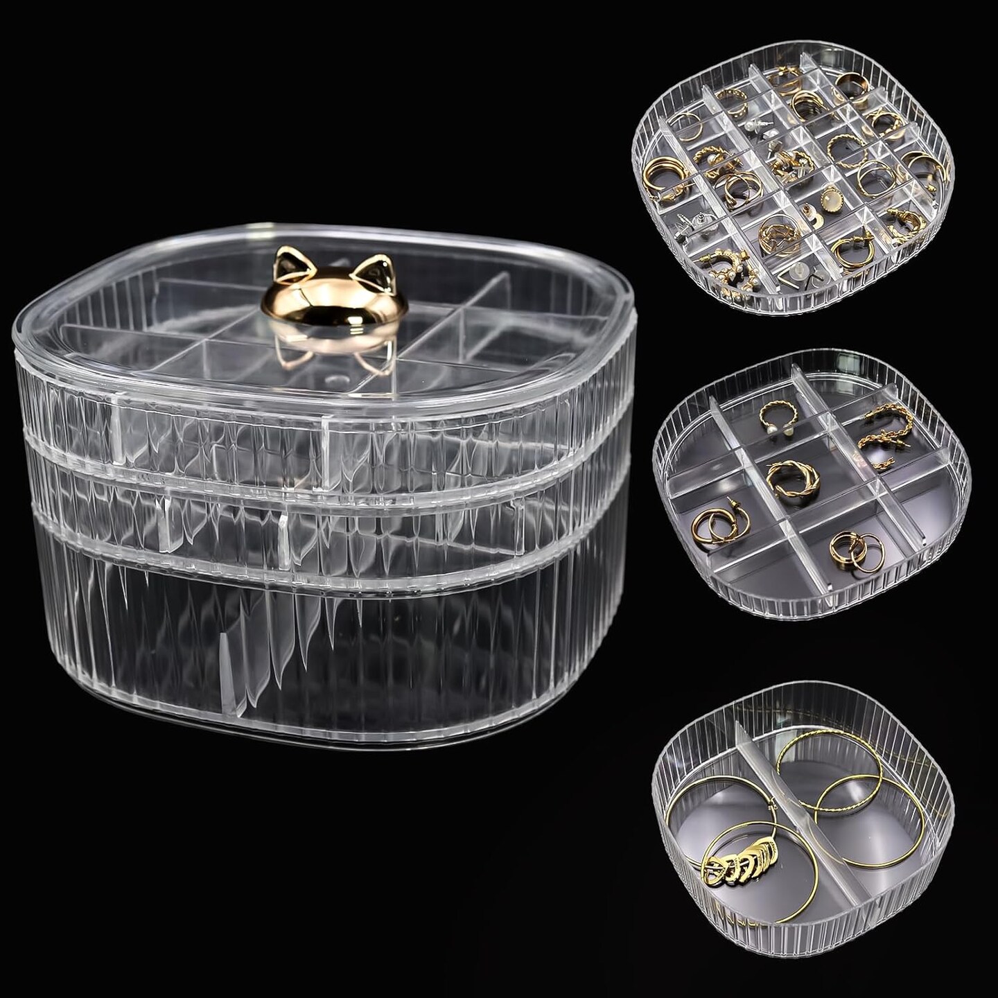Earring Organizer Box,Small Jewelry Travel Organizer for Girls Women,Stackable 3-Layers Clear Jewelry Storage Holder with Lid, Necklace Earrings Rings Bracelets Cases for Gifts (Clear)