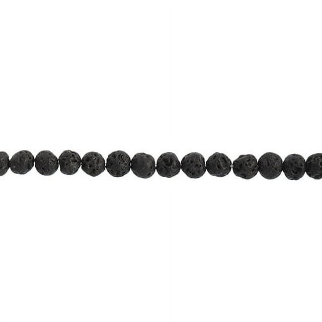 Earth's Jewels Semi-Precious Black Lava Natural Round Beads, 6mm