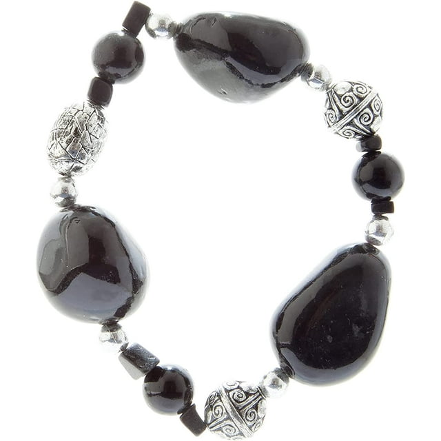 Earth's Jewels Semi-Precious Dyed Onyx Natural Black Jasper Stretch Bracelet #57