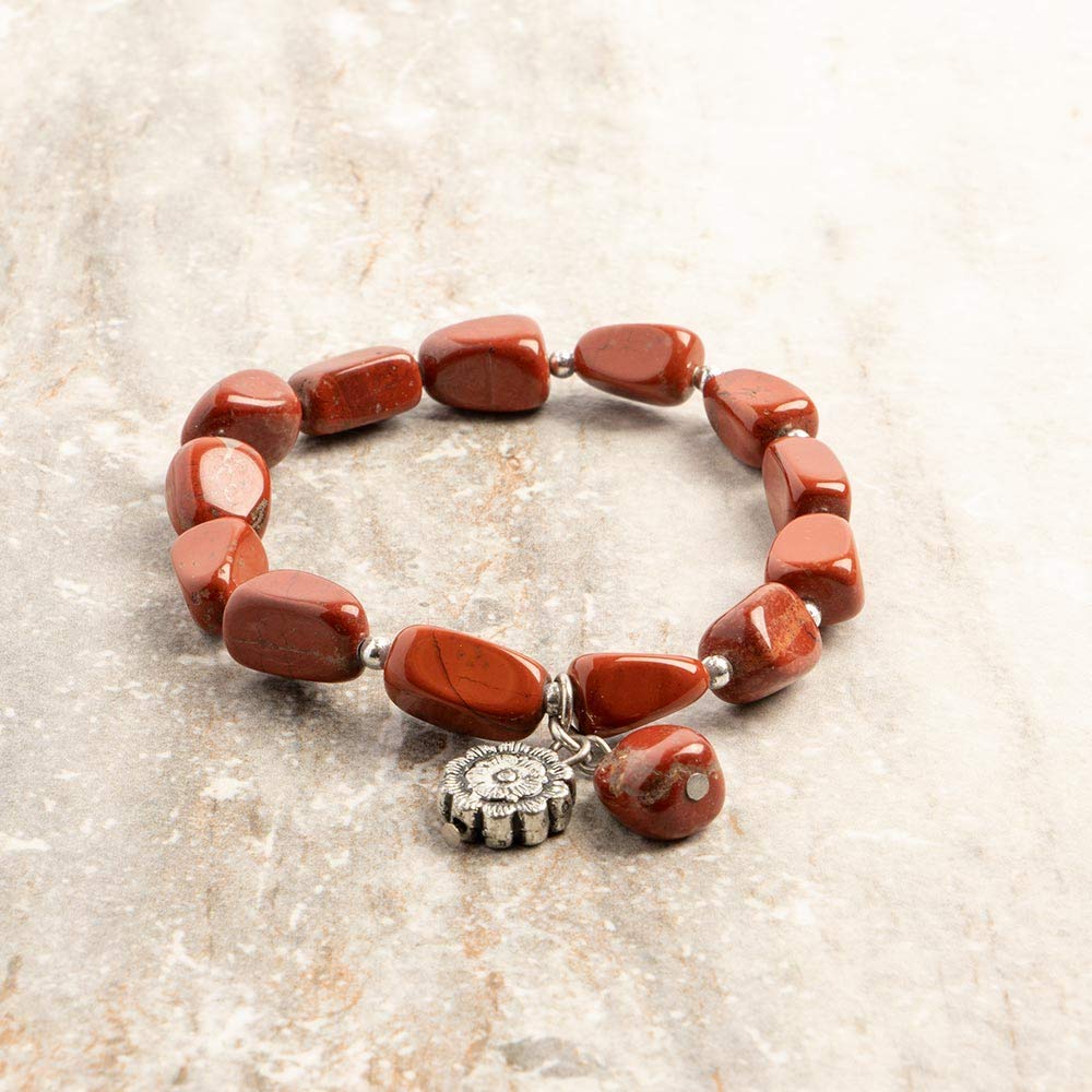 Earth's Jewels Semi-Precious Jasper Red Natural Bracelet, Flower Charm