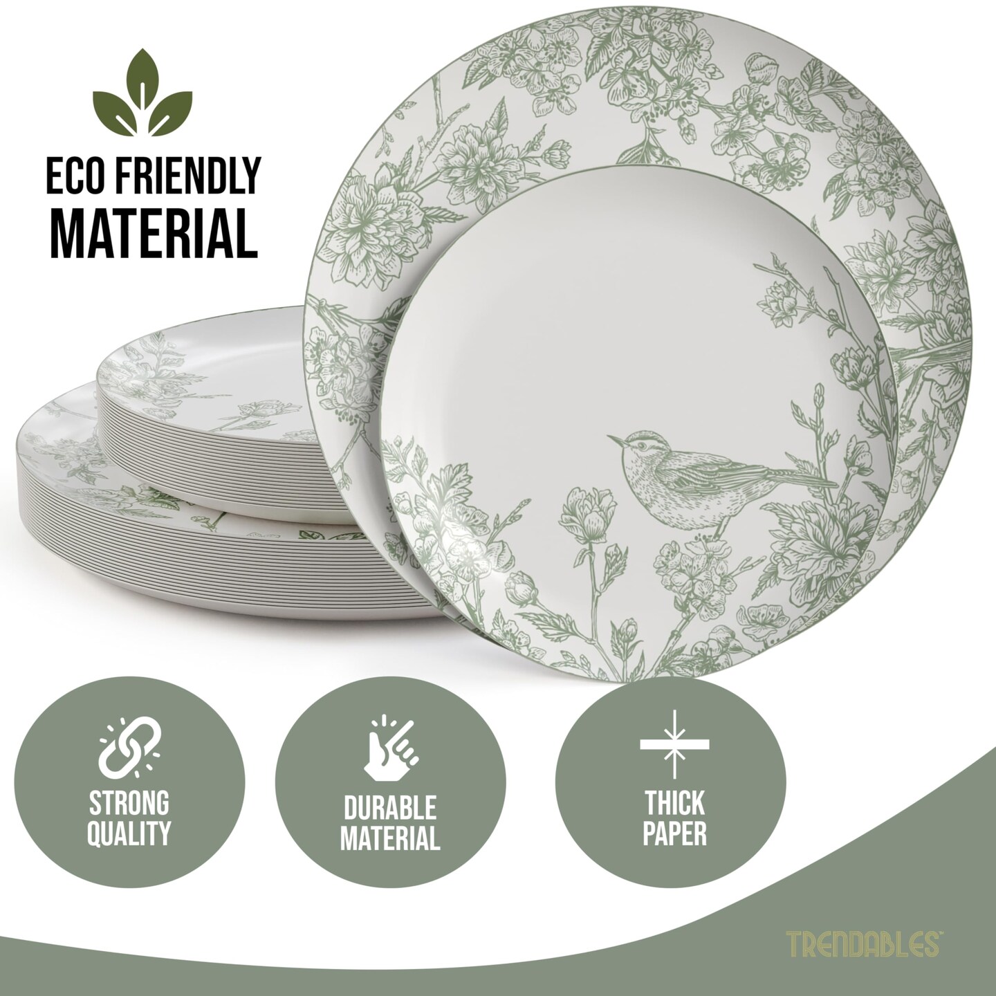 Earthtrends Heavy Duty Paper Plates for parties – Includes 8-Inch Paper Dessert Plates and 10-Inch Paper Dinner Plates – Disposable Floral Paper Plates for Parties, Weddings, Events, BBQs, Birthdays, Catering, Holidays – Elegant Tableware Set