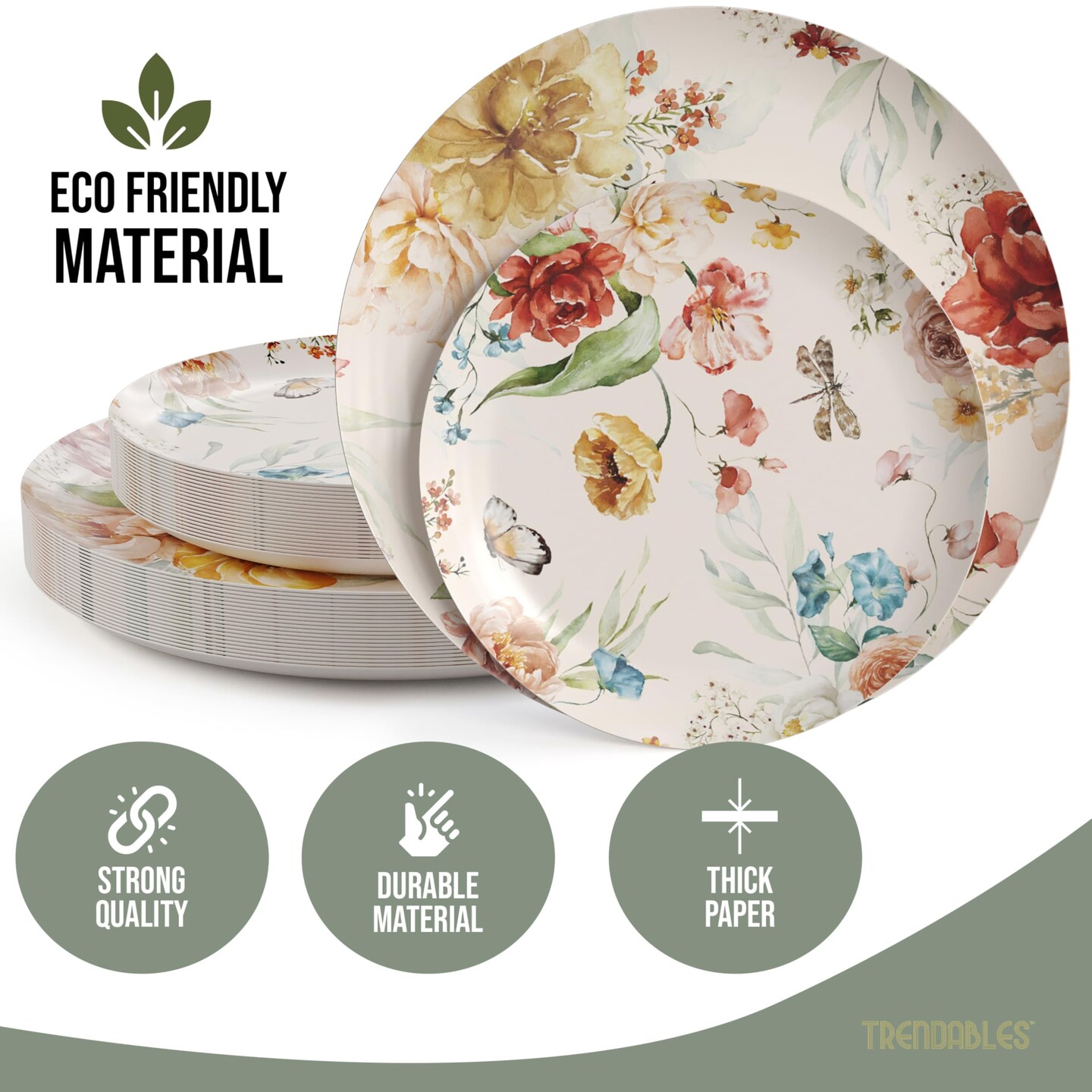 Earthtrends Heavy Duty Paper Plates for parties – Includes 8-Inch Paper Dessert Plates and 10-Inch Paper Dinner Plates – Disposable Floral Paper Plates for Parties, Weddings, Events, BBQs, Birthdays, Catering, Holidays – Elegant Tableware Set
